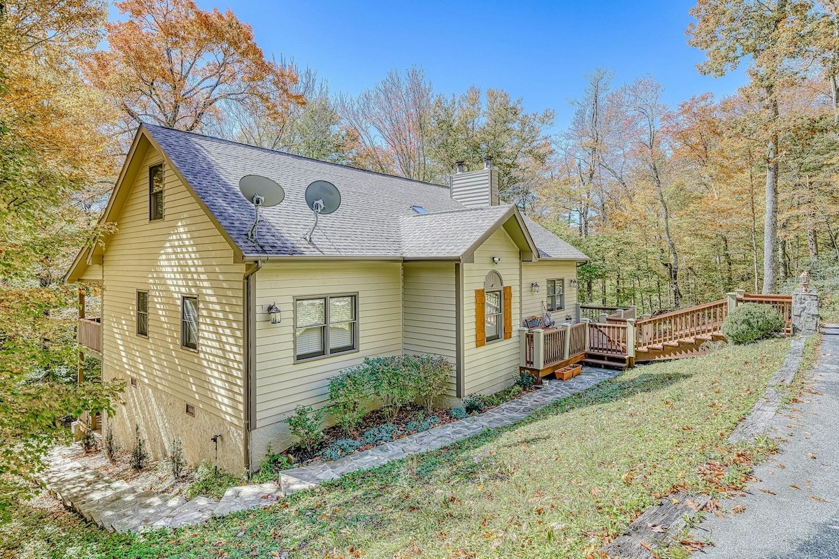 Peace Be With You---enjoy your morning coffee on the deck overlooking a peaceful pond, long-range views of Beech Mountain, and the sound of a nearby running stream with small waterfalls! Annie’s Cabin is located on Sugar Mountain at approximately 4350 feet and less than 5-8 minutes from the Sugar Mountain Ski Resort, Golf Course, Tennis Courts, Hiking Trails, Grocery Stores, Restaurants, Antique Shops, and Churches. Two king size beds, one queen size bed, and a set of bunk beds sleep eight guests. The newly renovated home includes central heat and air conditioning, rustic oak style flooring, new paint, a remodeled kitchen with stainless appliances and granite countertops, gas log fireplace, washer and dryer, wireless internet, cable HDTV in the family room and all bedrooms, and a gas grill on the deck. This is your home-away-from-home to fish, relax, and enjoy the many attractions of the Pisgah National Forest, Blue Ridge Parkway, and the North Carolina High Country, including Grandfather Mountain, Linville Falls, Linville Caverns, Historic Banner Elk and Boone, and Tweetsie Railroad for the kids. The Cabin is not suitable for toddlers of crawling age to 3 years due to the pond behind the cabin, the steps on the side of the cabin, the upper deck with attached benches, and open stone fireplace with hearth that could present safety issues. We do not accept long term rentals (30+ days). We have two Ring cameras/flood lights on the premises, front walkway and Eagle side of backyard. Once guests notifies host that they have arrived, the front camera is turned off until the morning of departure. The back ring remains on due to the wildlife that frequents the property, but with no audio.