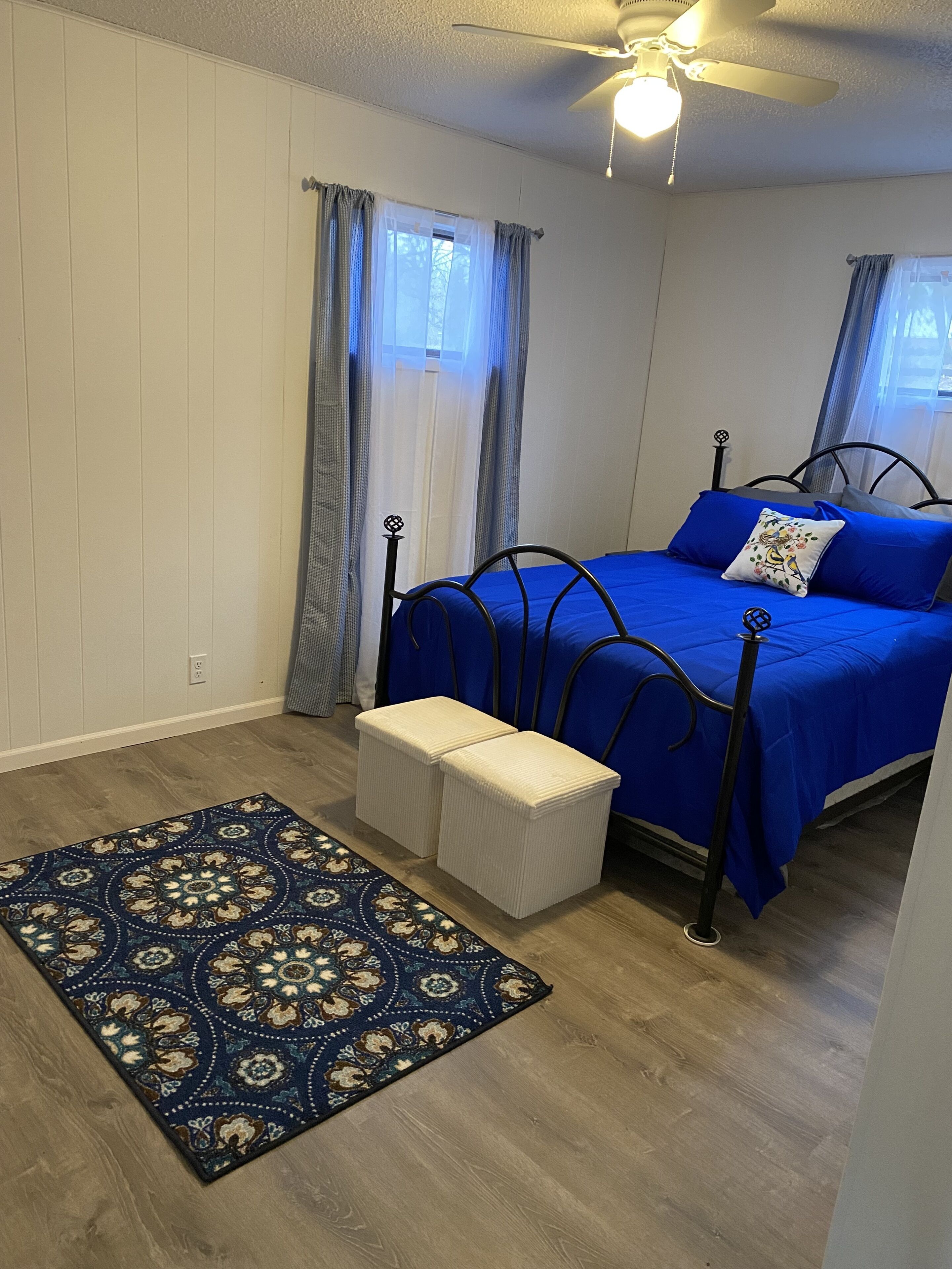 - Three cozy bedrooms, including two with queen mattresses and a third perfect for kids or additional guests. We provide a stacked washer and dryer as well.