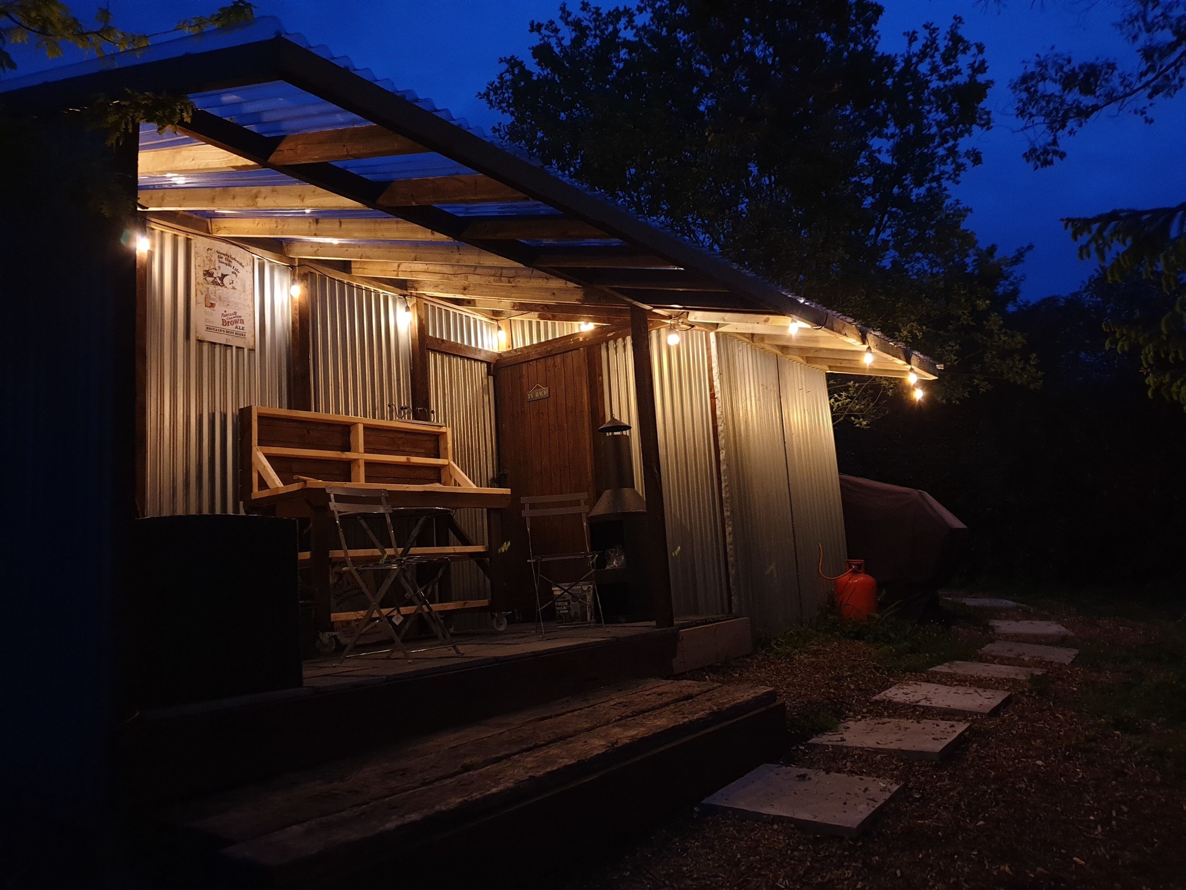 The outdoor space is sheltered and has fairy lights, outdoor furniture, log burner/pizza oven and a BBQ (bring your own charcoal). It all adds up to wonderfully cosy evenings in the great outdoors by the fire!