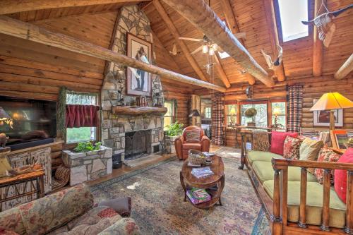 Situated on a 1.5-acre fenced property, the cabin offers a spacious grassy area with a pond, BBQ area, fire pits, covered decks, and a garden. Kids will love the hammocks and swings.
