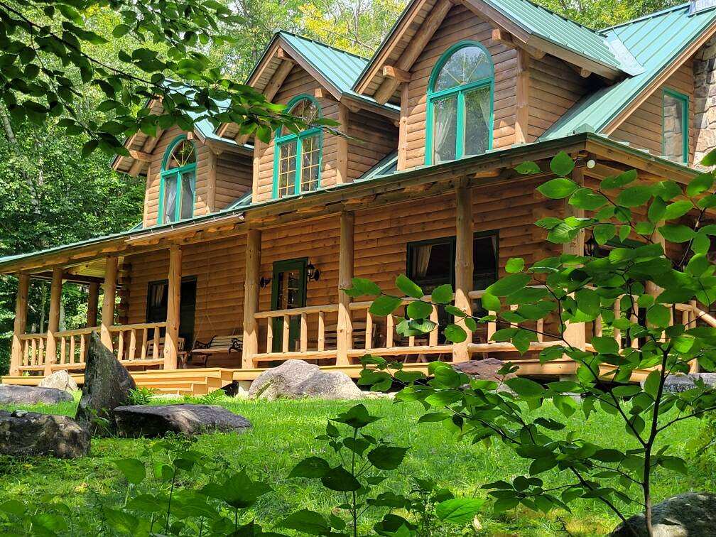 Upscale custom built log home nestled in a tranquil setting in the Berkshire mountains.