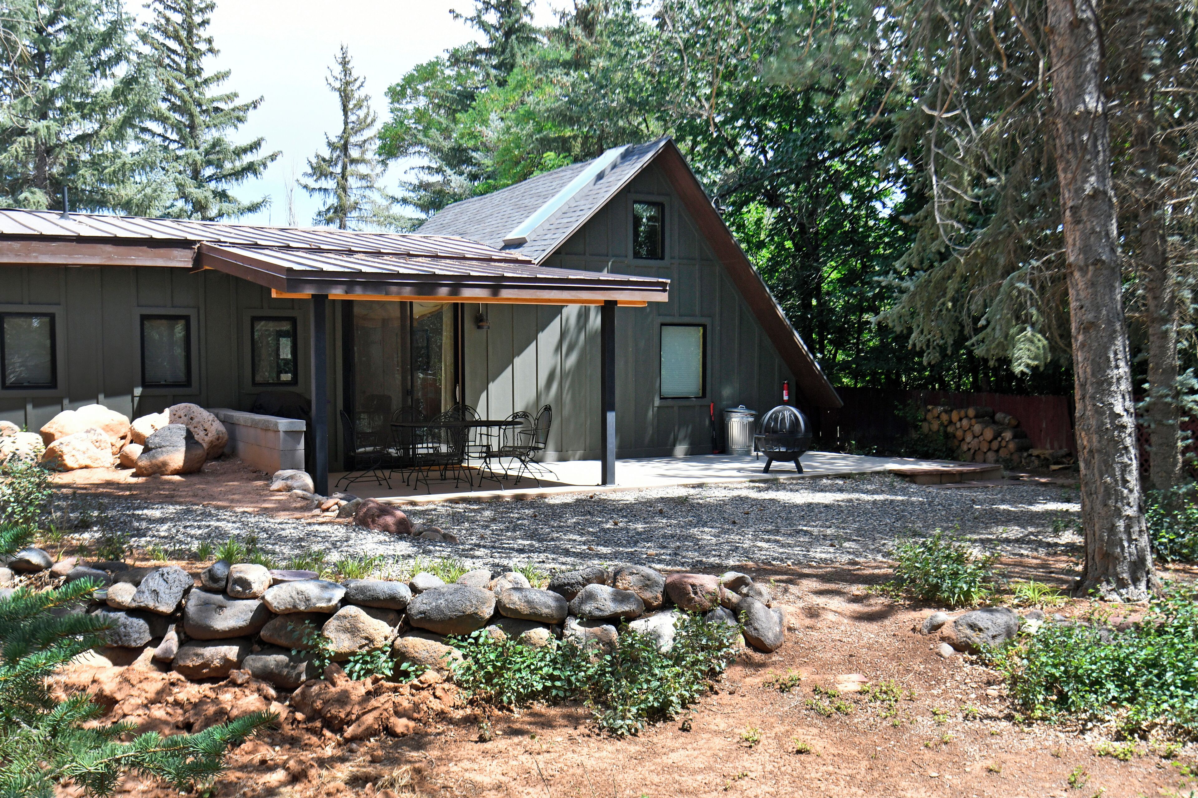 Guests of Tinker Creek Loft can enjoy full access to half of the outdoor spaces. This includes a front and back yard, a private patio and a patio shared with Tinker Creek Cabin guests.