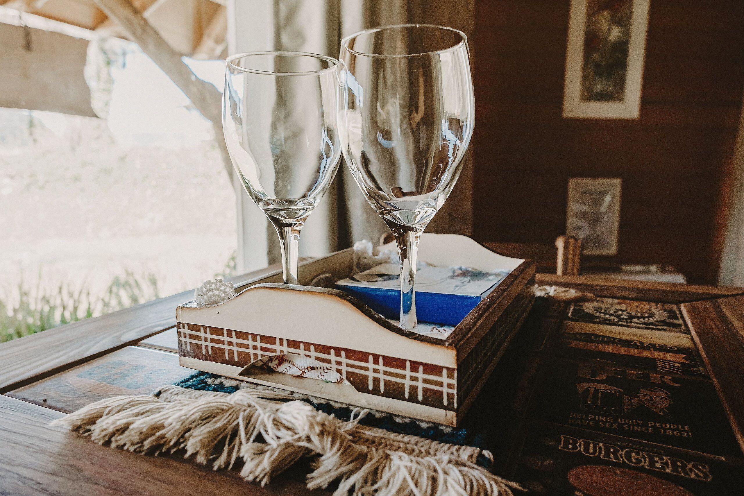 In our Cabana we have fully equipped kitchen including kitchen utensils, air fryer, gas oven, microwave, fondue pot, baking sheets, blender, sandwich maker, wine opener, decanter, coffee maker, Alexa and table items.