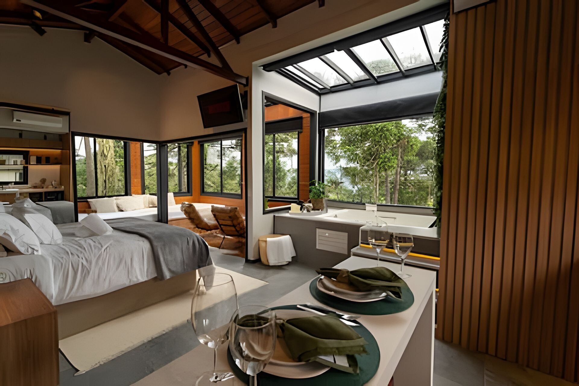 Our cabin was designed to provide memorable moments. A complete cabin with all comfort and sophistication in the midst of nature. The hut spaces were thought out in detail, with a personalized decoration. All the carefully chosen items, our body has Trussardi branded pieces, the amenites of the brand Blanc. Our cellar with a custom wine list for the hut. Located at the entrance of the city of Urubici, in the Aguas Brancas district 7km from downtown.
