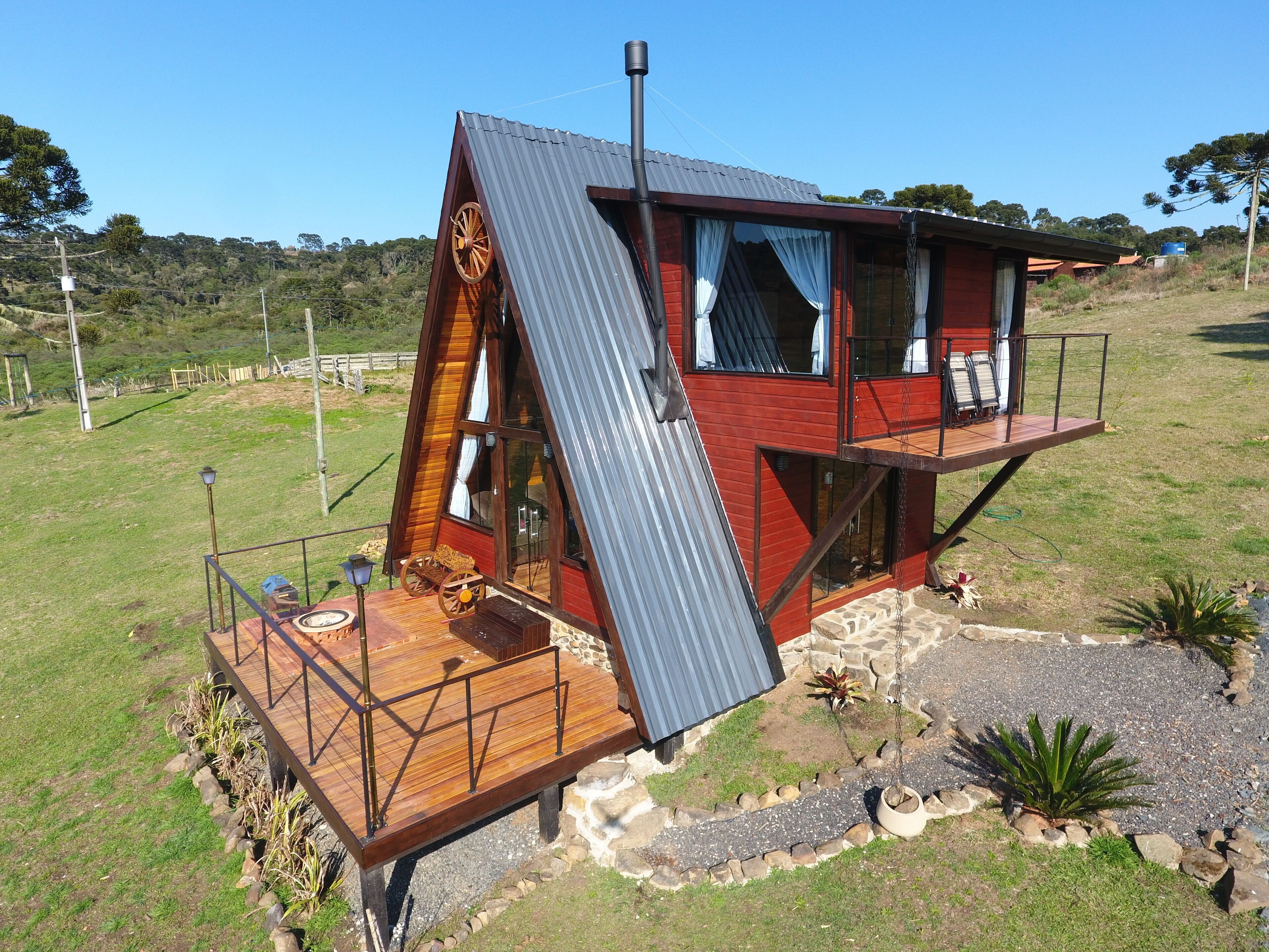 Discover the peace of the countryside in this cozy cabin in Urubici/SC. Equipped with air conditioning, indoor fireplace, TV, balcony, and Wi-Fi, it is the perfect retreat for nature lovers. Enjoy the presence of farm animals roaming the yard and its location in the Avencal Waterfall Valley. Just 3 km from the center and adjacent to an apple farm, easily explore the local beauties.