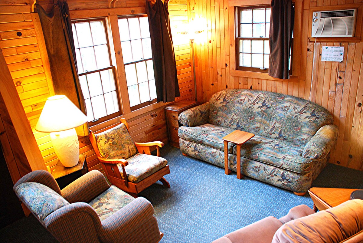 Discover the charm of Cabin #3, nestled within Riverside Point Resort near the tranquil banks of Fish Hook River. Recently renovated to offer a blend of modern comfort and rustic allure, this 2-bedroom, 1-bathroom retreat welcomes you to experience Park Rapids' natural beauty. Relax in the inviting living room with a full futon and cable TV or create savory meals in the fully stocked kitchen. Each bedroom boasts new queen beds and smart TVs for optimal comfort. Embrace the serenity of Northwoods living at Cabin #3