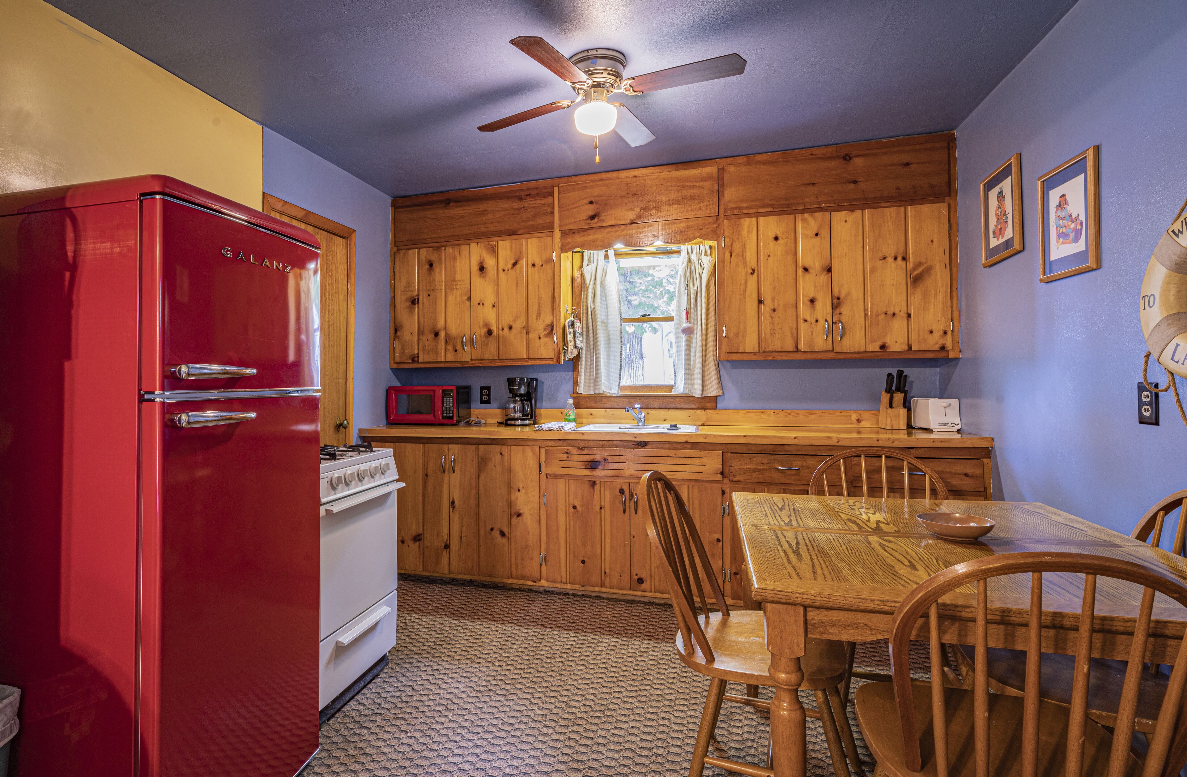 This whimsical lakeside two bedroom/one bath cabin is located at Two Inlets Resort with beautiful knotty pine interior and a large picture window overlooking Two Inlets Lake, with a lakeside screened porch.