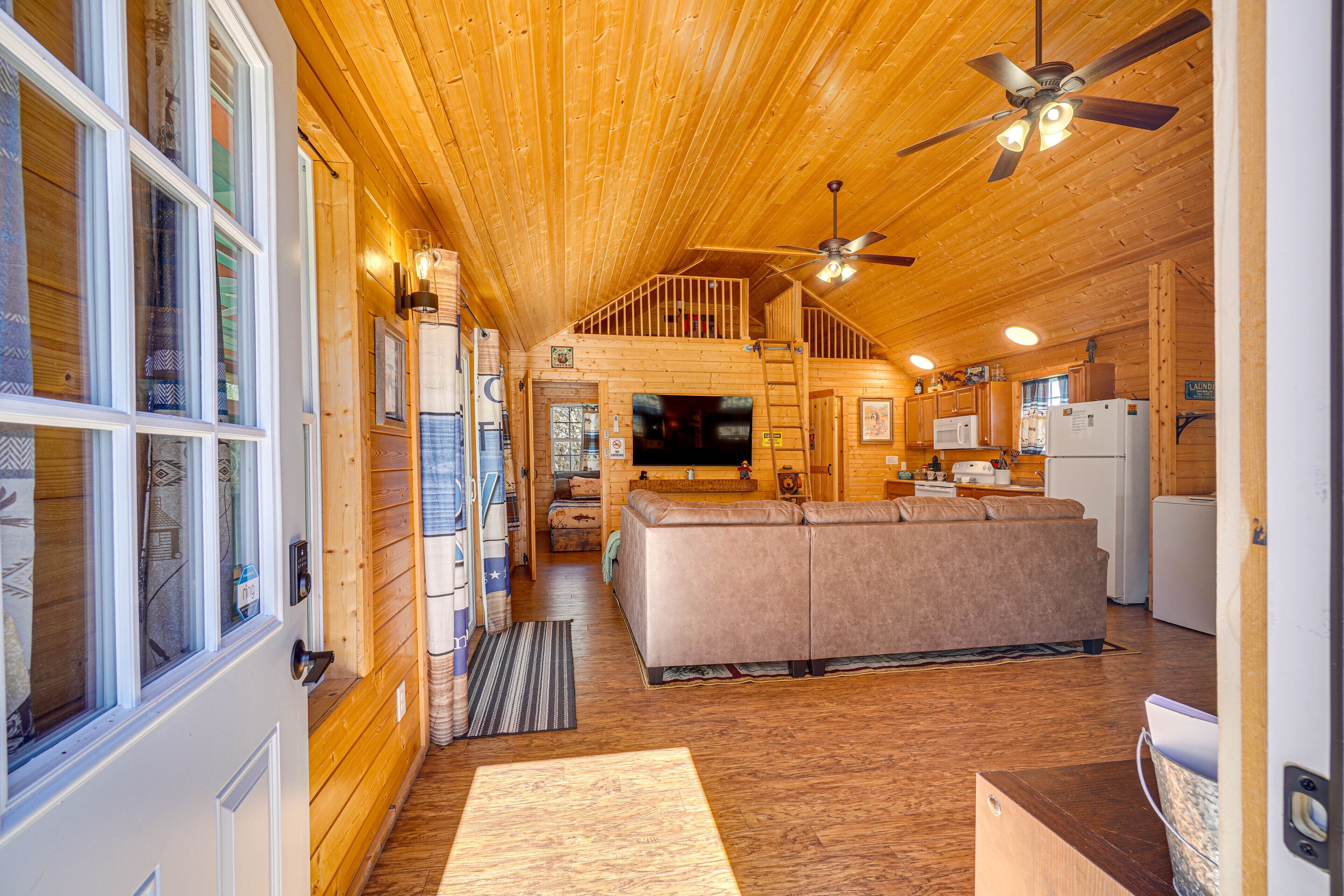 This cabin is easily accessible by motorcycle or vehicle—level parking for five cars. You will find Dollar General, Kroger, and Food City nearby. Just 15 minutes to Pigeon Forge, 15 minutes to the Smoky Mountains, and 25 minutes to Gatlinburg. With such a great location, you're just a short drive from everything downtown Pigeon Forge has to offer.