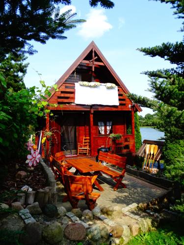 Located in Białobrzegi in the Mazowieckie region, Domki Drewniane Przystań Kajaczek has accommodations with free WiFi and free private parking. The lodge provides guests with a terrace, river views, a seating area, a flat-screen TV, a fully equipped kitchenette with a fridge and a stovetop, and a private bathroom with shower and a hairdryer. A grill is available on site and hiking can be enjoyed within close proximity of Domki Drewniane Przystań Kajaczek.