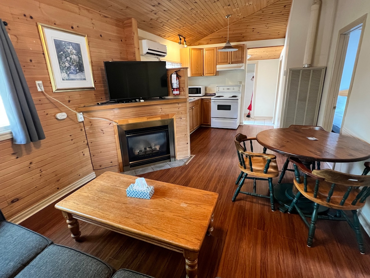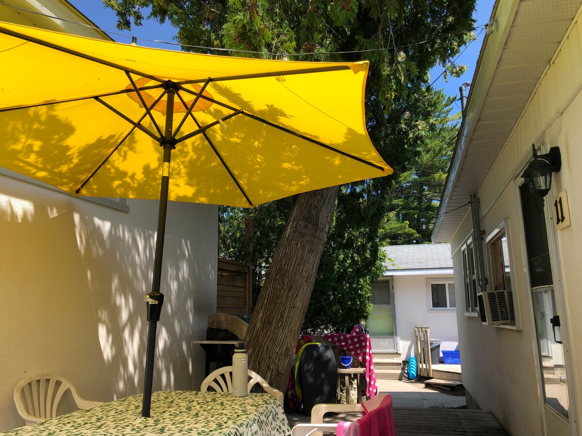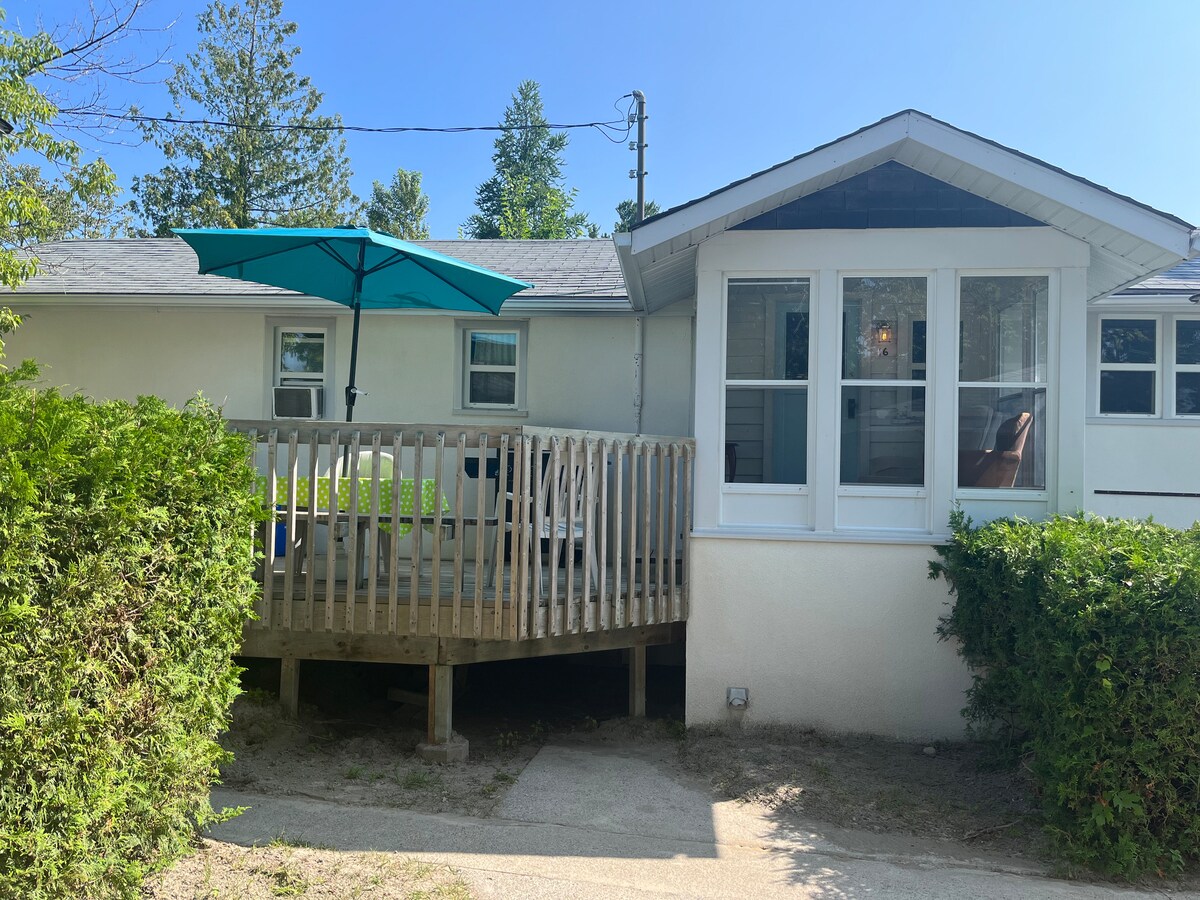 2 minute walk to beach 1, this cute 2 bedroom cottage has a full kitchen and free parking. Enjoy the largest fresh water beach in the world. 14km of sun and sand. Beach 1 is the busiest beach in Wasaga and that's where you will find this cottage. There are 8 cottages on the property, so book this one, and tell your family/friends to book another one. Spend a day exploring as we are also 30 minutes to the Niagara Escarpment, the ski town of Collingwood and the 900km Bruce trail.