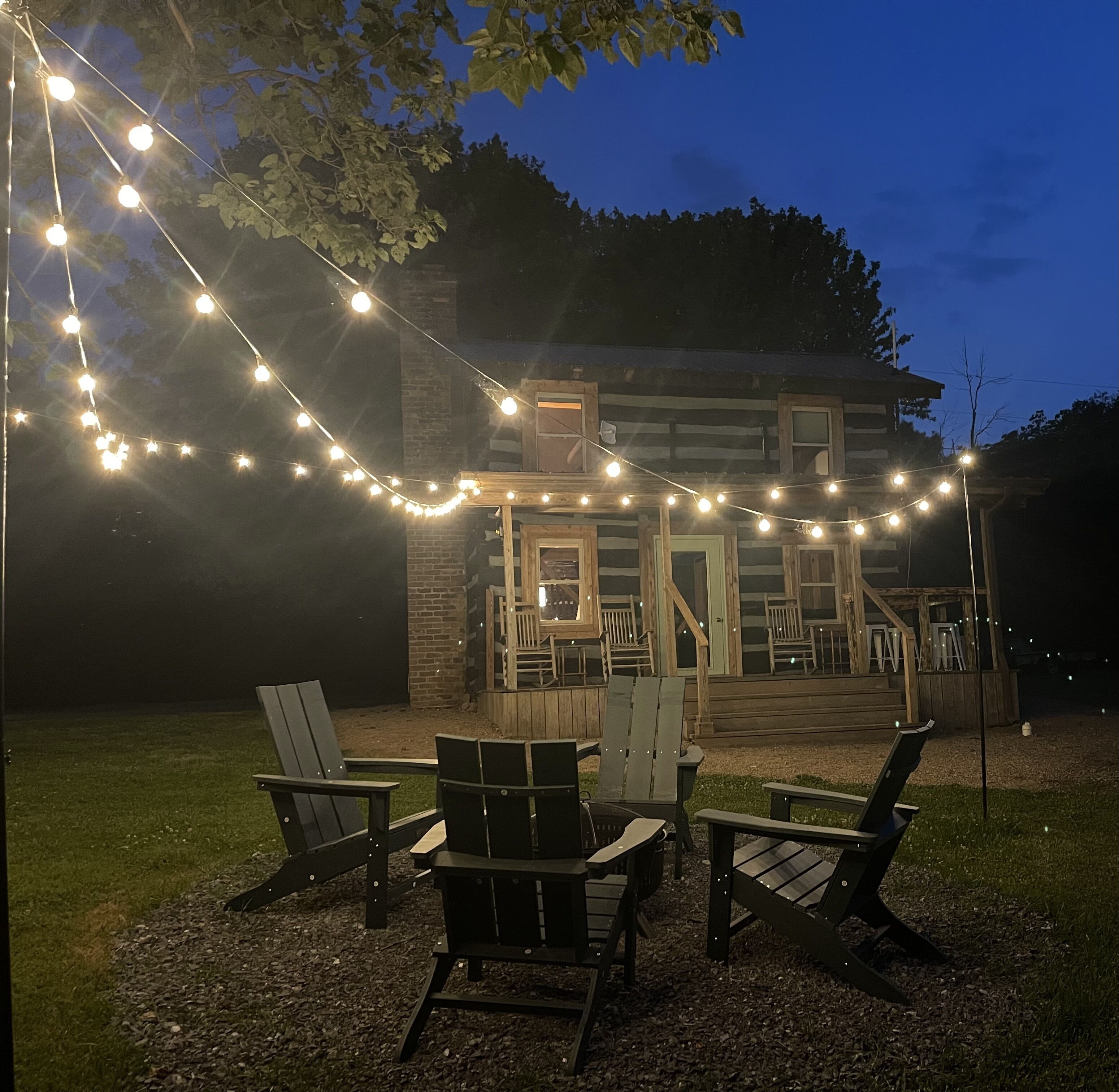 We offer a relaxing environment where you can enjoy some downtime and privacy. Our cabin has a large wrap around porch, where you can sit and soak up the peace and quiet. Our porches have enough space to play a good game of corn hole, if you feel like having a little fun. Having a huge covered porch is also a great advantage, if you experience a little rain during your stay. On a cool evening, we invite you to sit back and admire our outdoor firepit area, where you can build your favorite type of delicious SMORES....yummmmm!!