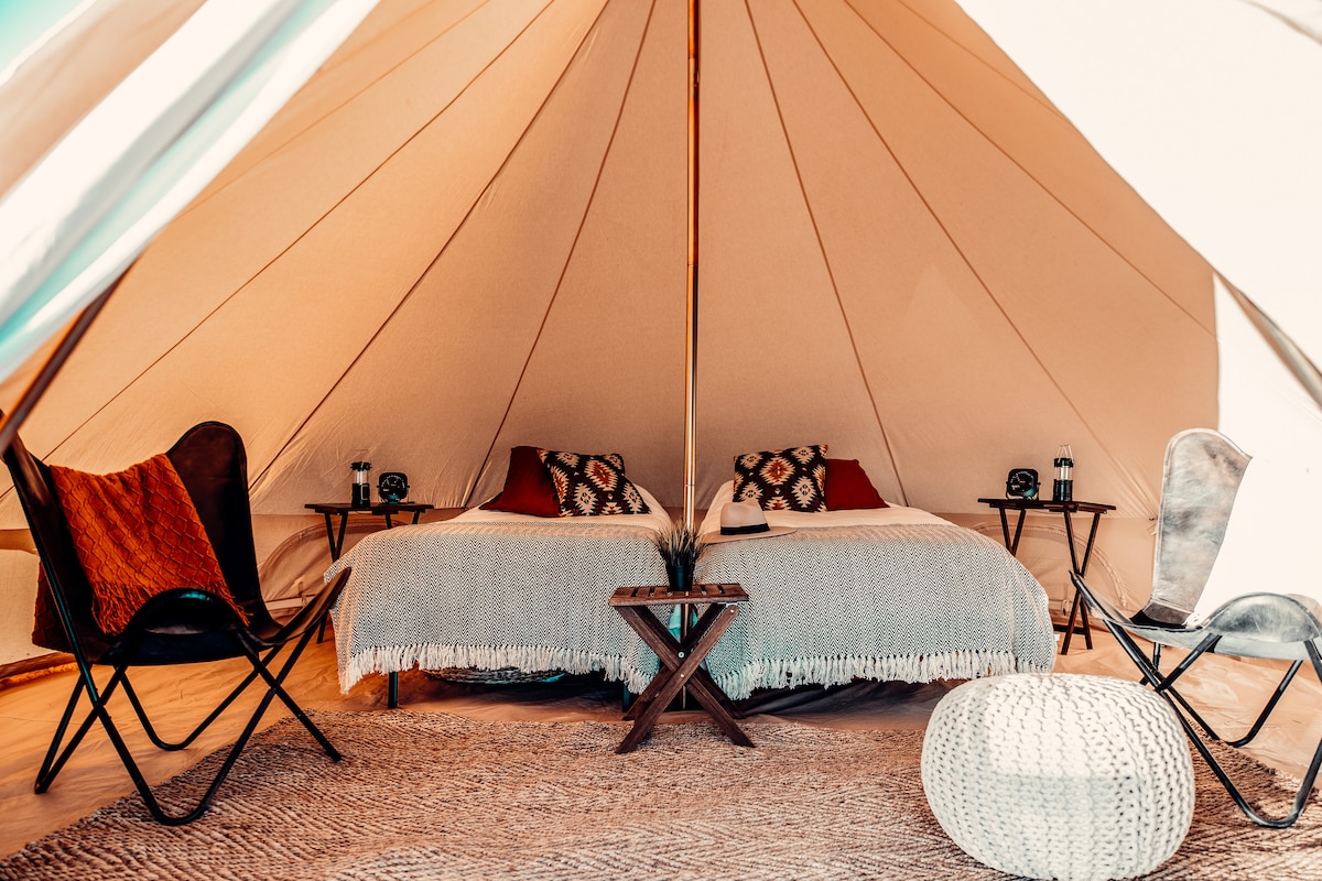 Each Tent is equipped with comfortable beds & bedding, and is within short walking distance of a central washroom facility (where toilets and showers are available in