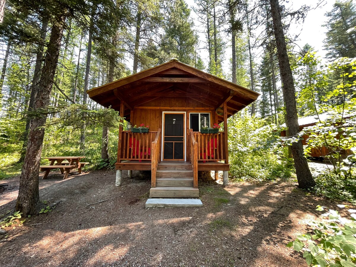 Experience rustic Montana charm with Glacier NP at your doorstep. Enjoy endless outdoor adventures or peaceful relaxation. Our cabins come furnished with a table and benches, comfy bedding, towels, free WiFi and a small fridge. Outside, chairs, picnic tables, a fire pit, and a nearby gazebo with gas grills await that perfect outdoor meal. Pets welcome for $30/stay. Shared restrooms with private toilet and hot showers are close by, and electric heat keeps you toasty on cool Montana nights.