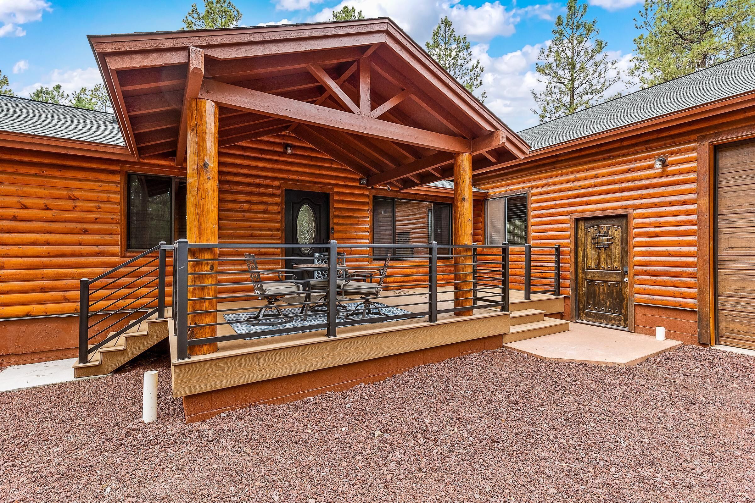 This real log cabin is conveniently located in the country 12 miles from Williams and 45 miles from the Grand Canyon.