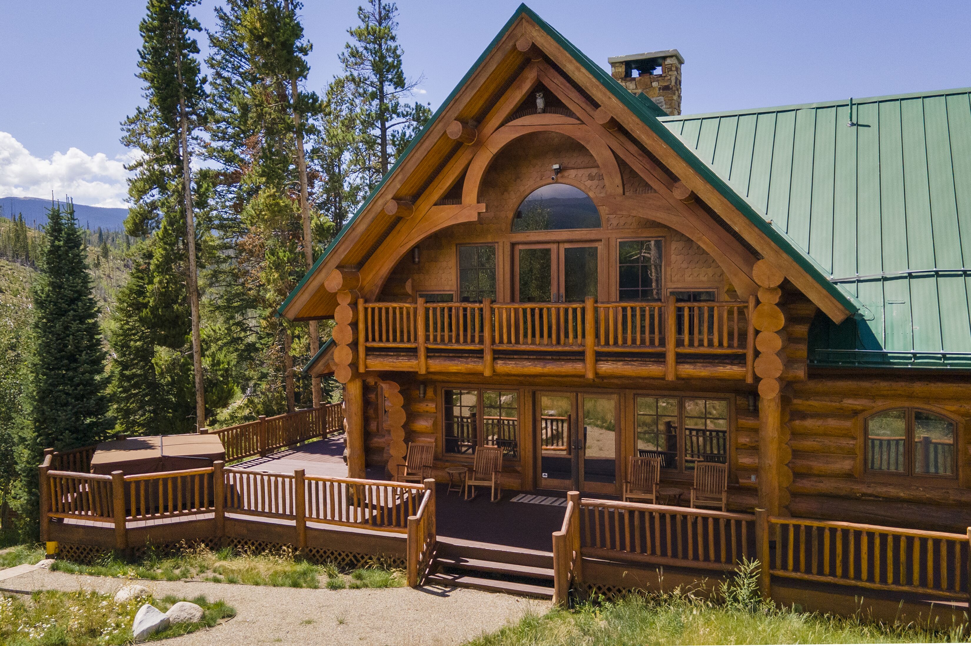 Fantastic 4,500 sq. ft. 3 story cabin minutes from downtown Winter Park ! Sleeps up to 16 people in 5 bedrooms. Spiral staircases access all 3 levels. Three full baths plus two 1/2 baths. Huge family room with massive fireplace features multiple couches, card table, baby grand piano, and a 60 inch flatscreenTV with cable. Spacious kitchen and dining area on the first floor. Adjacent to WP shuttle during ski season. Beautiful landscaping with Private outdoor Hot Tub and breathtaking views of the Continental Divide !! This is the most unique property in all of Winter Park !