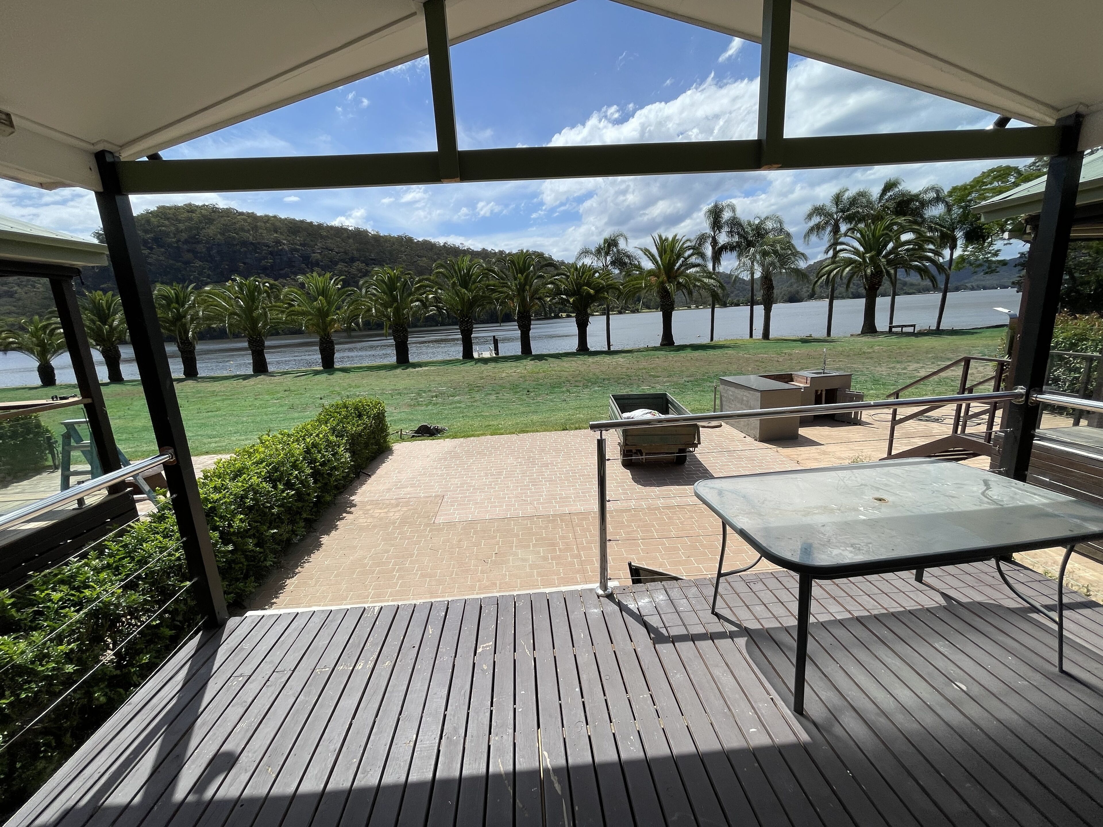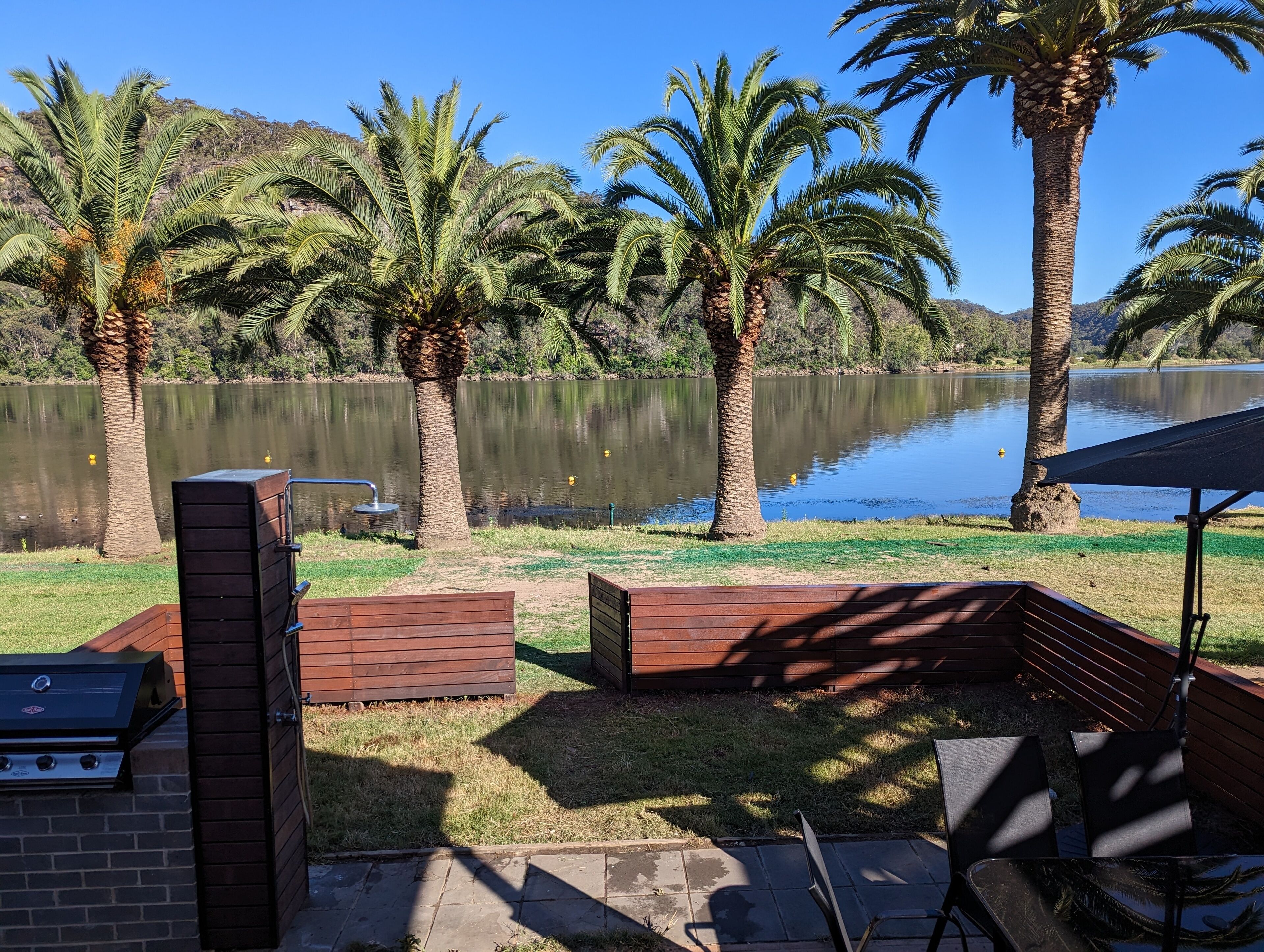 The Whitehouse on Wisemans is located just over an hours drive North from the center of Sydney. Situated within Tasman Holiday Park, you will have access to onsite parking at the rear of the cabin with space for 2 cars or a car and boat or jet ski. Access is not available to the garage. You will have exclusive use of the cabin and will be able to enjoy the expansive grounds of the park with access to the pontoons for launching kayaks and the boat ramp for launching boats or jet skis. Please note this cabin does not provide a private mooring. The many palm trees provide a wonderful space for picnicking in the shade by the river. Picnic chairs are provided for your use.