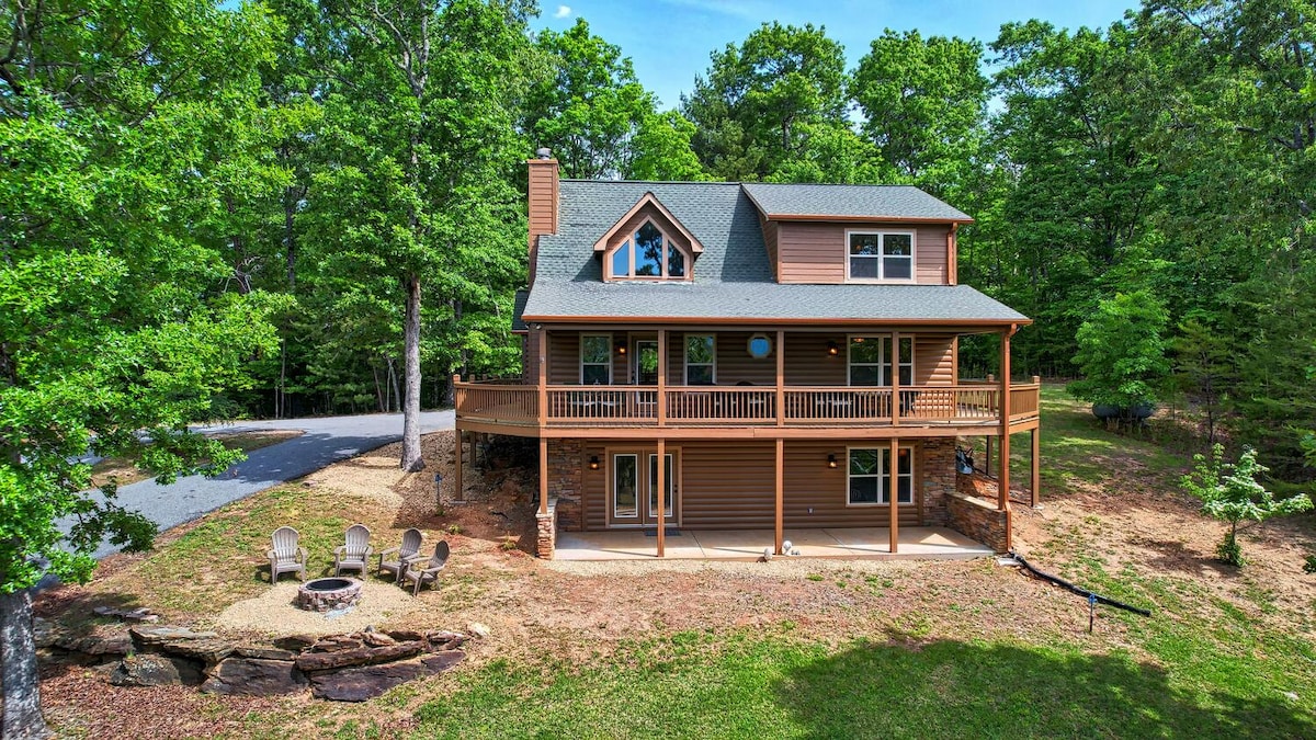 Welcome to 'Blue Chatuge', a spacious three-level cabin retreat nestled in the Blue Ridge Mountains near Lake Chatuge. Perfect for families and groups, this home sleeps 12 and features a luxurious hot tub, a wraparound porch with stunning views, and a large game room with a pool table, skee-ball, arcade machines, and more. Enjoy cozy fireplaces, a modern kitchen, and a backyard fire pit. Conveniently located near Hiawassee, hiking trails, and charming mountain towns, it’s the perfect getaway!