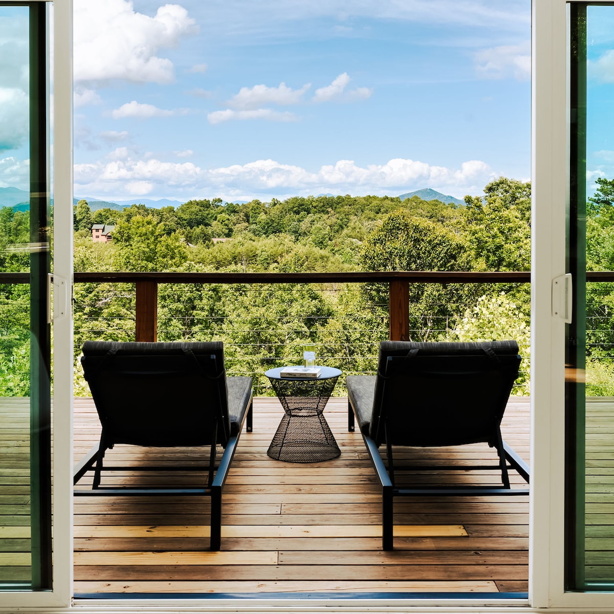 The main living area features soaring ceilings, panoramic views, and a chef’s kitchen ideal for group meals. Outside, unwind in the hammock, dine al fresco, or cozy up in the screened patio, surrounded by nature and fresh mountain air.