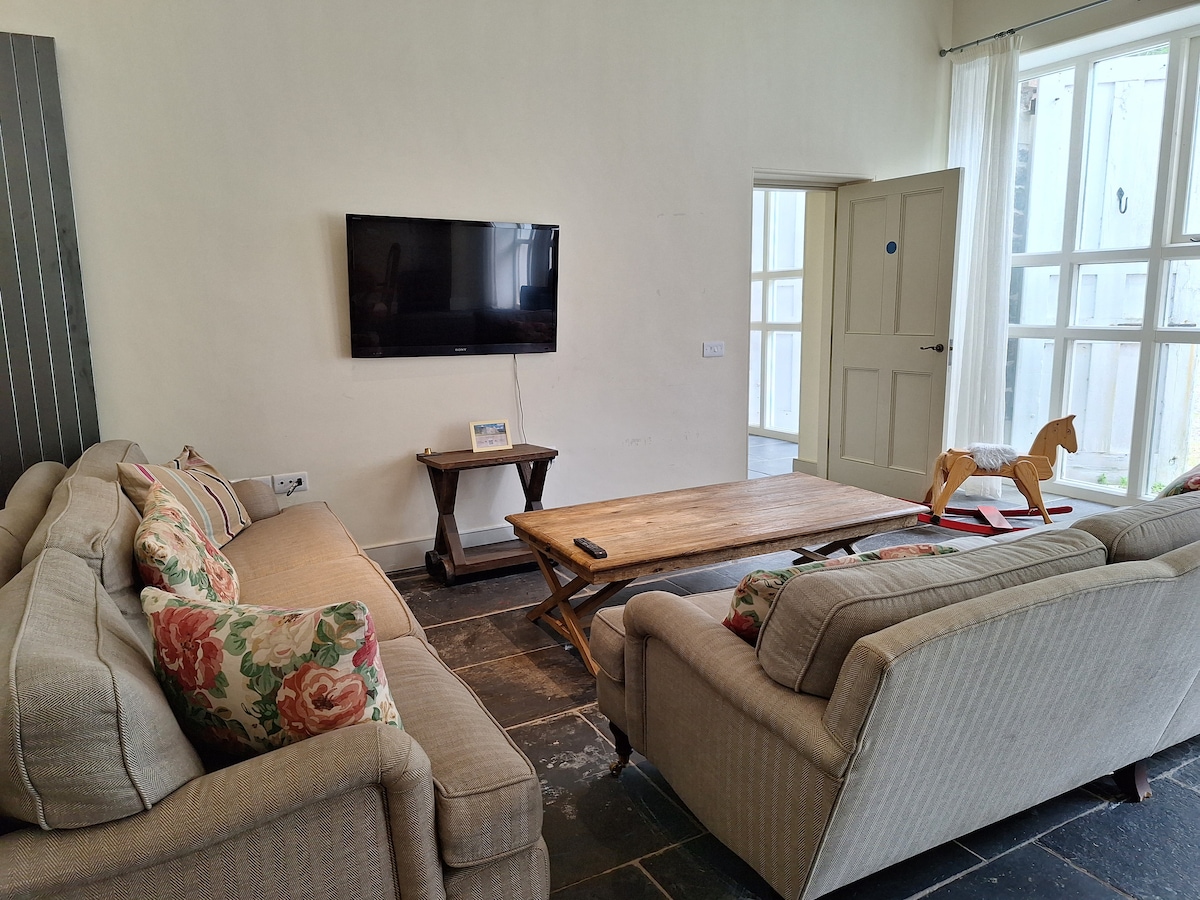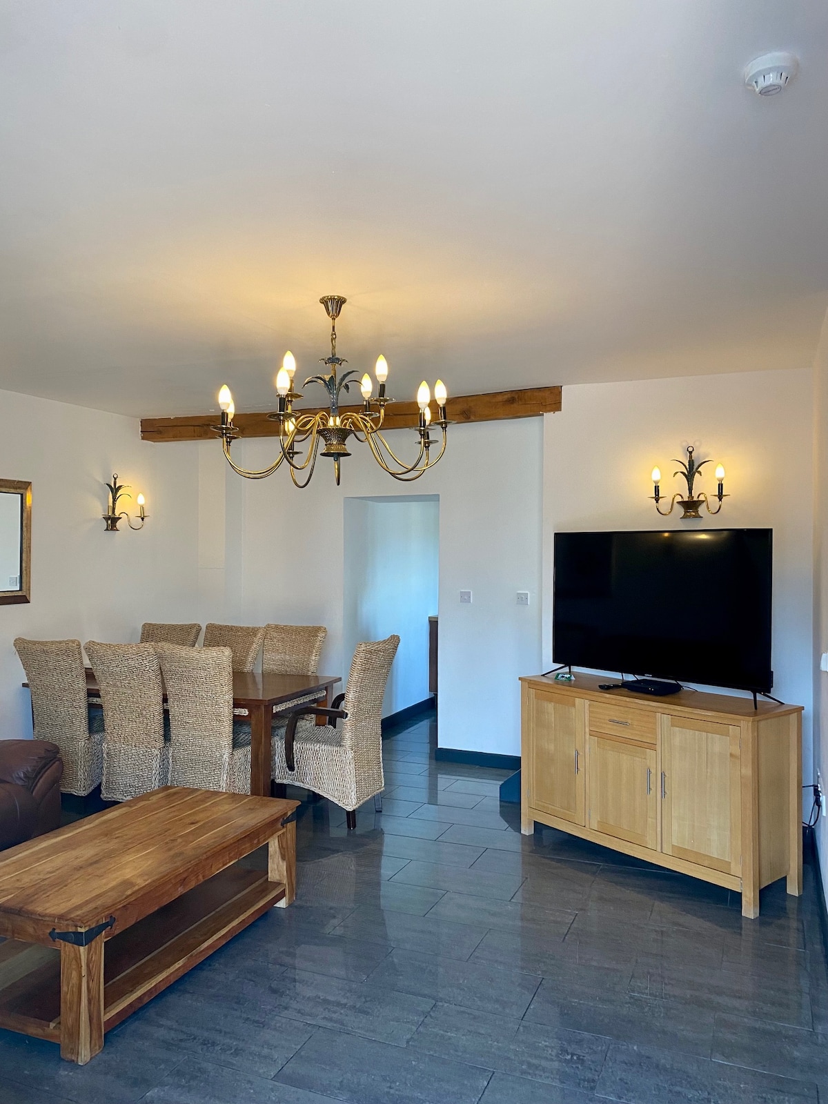 Conservatory: This is the main living room that is 8 meters by 4 meters with spectacular views of the credigion coast line and the surrounding hills.There is a two seater and three seater sofa with electric recliners and usb charge points, dining room table with six chairs, smart tv and Ecco dot.