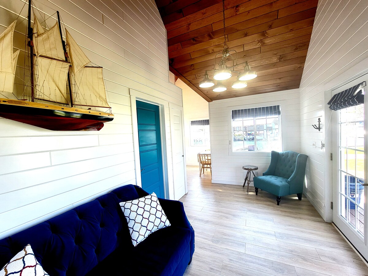 This river cottage is nicely nestled in a quiet area. The beautifully decorated space creates a nautical feel. Open floor plan denotes plenty of room for all & shares an abundance of natural light.