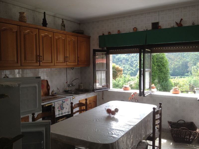 The house, with three floors linked by an elegant and comfortable wooden staircase and topped with ceilings and also wooden beams. Single corridors on the upper floors and mezzanine with grill and direct access to kitchen on the bottom. The rooms are comfortable, warm, simple and there is even a special for children. For 2 and 3 people, with and without bathrooms, allow for various configurations. A large living room, kitchen and toilet on the lower floor. 2 bedrooms, full bathroom, large distributor, reading corner and service room in the first and 2 bedrooms, full bathroom and spacious distributor on the second floor, complete the interior spaces. Terrace with gazebo and small garden, parking for 4 cars and green, lots of green surrounds you on all four sides.