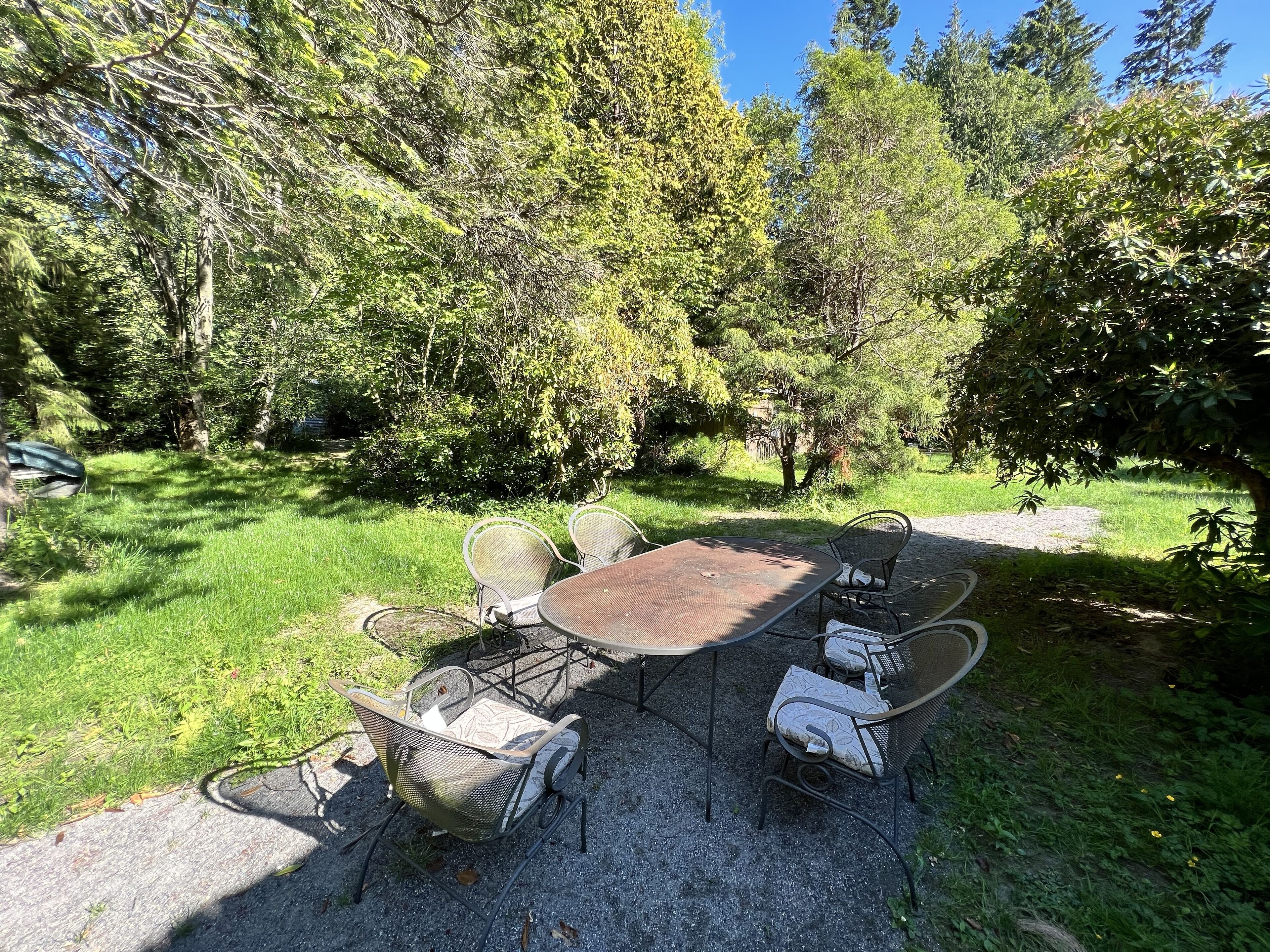 Out back you'll find a 10' oak beam dining table, fire pit and beautiful pastoral views with peaks of Mt Baker. The expansive grass yard is great for games and small parties or gatherings.