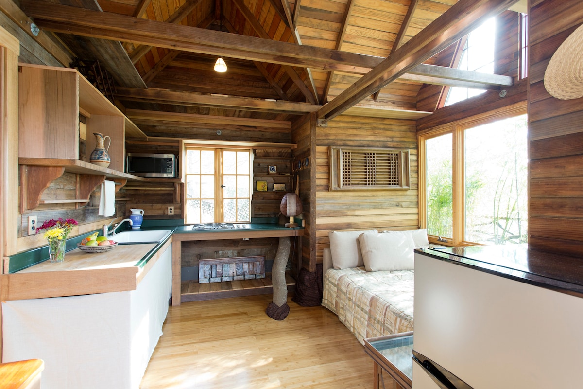 Great for couples, solo adventurers, professors and business travelers. Quiet setting; lush landscaping; walk to boutiques, great restaurants, cafes, indie movie theatre, UCB Campus, hiking/open space, BART and buses. The cottage is light filled, with two skylights, high ceilings and small loft with a futon couch, good for reading, meditating or just hanging out. The cottage has a private patio with outdoor table for two. The kitchen is well equipped. NOTE: Minimum rental is 30 days or longer.
