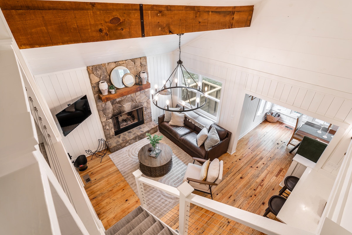Step into Cartecay Castaway, where comfort meets charm in a thoughtfully designed riverside cottage. The home features a serene king bed in the open loft, a cozy queen bedroom on the main floor, and a kids’ bunk room with a full and twin bed—perfect for families. There are 1.5 baths, plus an outdoor shower for rinsing off after a soak in the riverside hot tub or a day on the river.