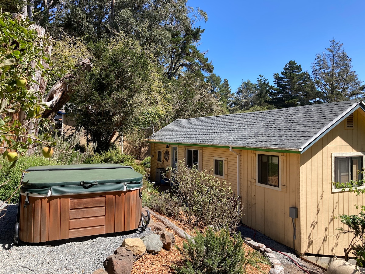 Pine View Cottage is a 1 bedroom/1 bathroom home perfect for a couple looking for a peaceful and private retreat in the town of Bodega Bay. The Pine View Cottage has a full kitchen, private fenced patio, barbecue and private hot tub.