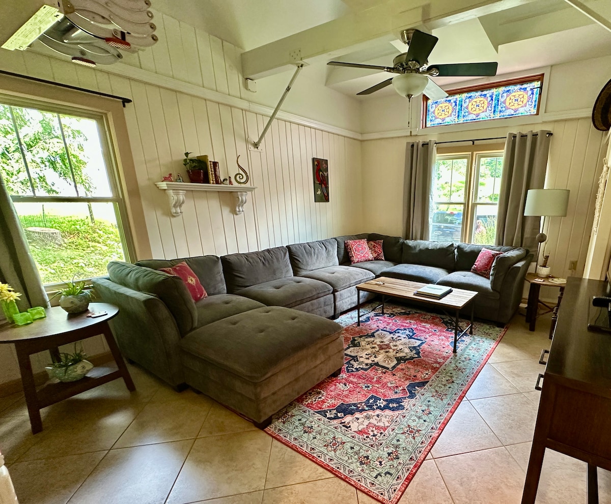 -Inviting living spaces. Relax on the large sectional sofa or on the deck overlooking the creek. Smart TV with Roku (Netfllix, Prime, Max) & HDMI compatible. High speed internet & WiFi provided.