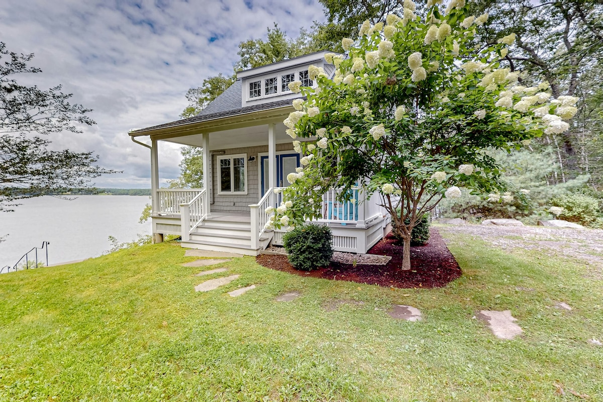 This pretty, shingled cottage is only minutes away from downtown Boothbay Harbor, yet so peaceful you can enjoy the sound of loons echoing across the harbor.