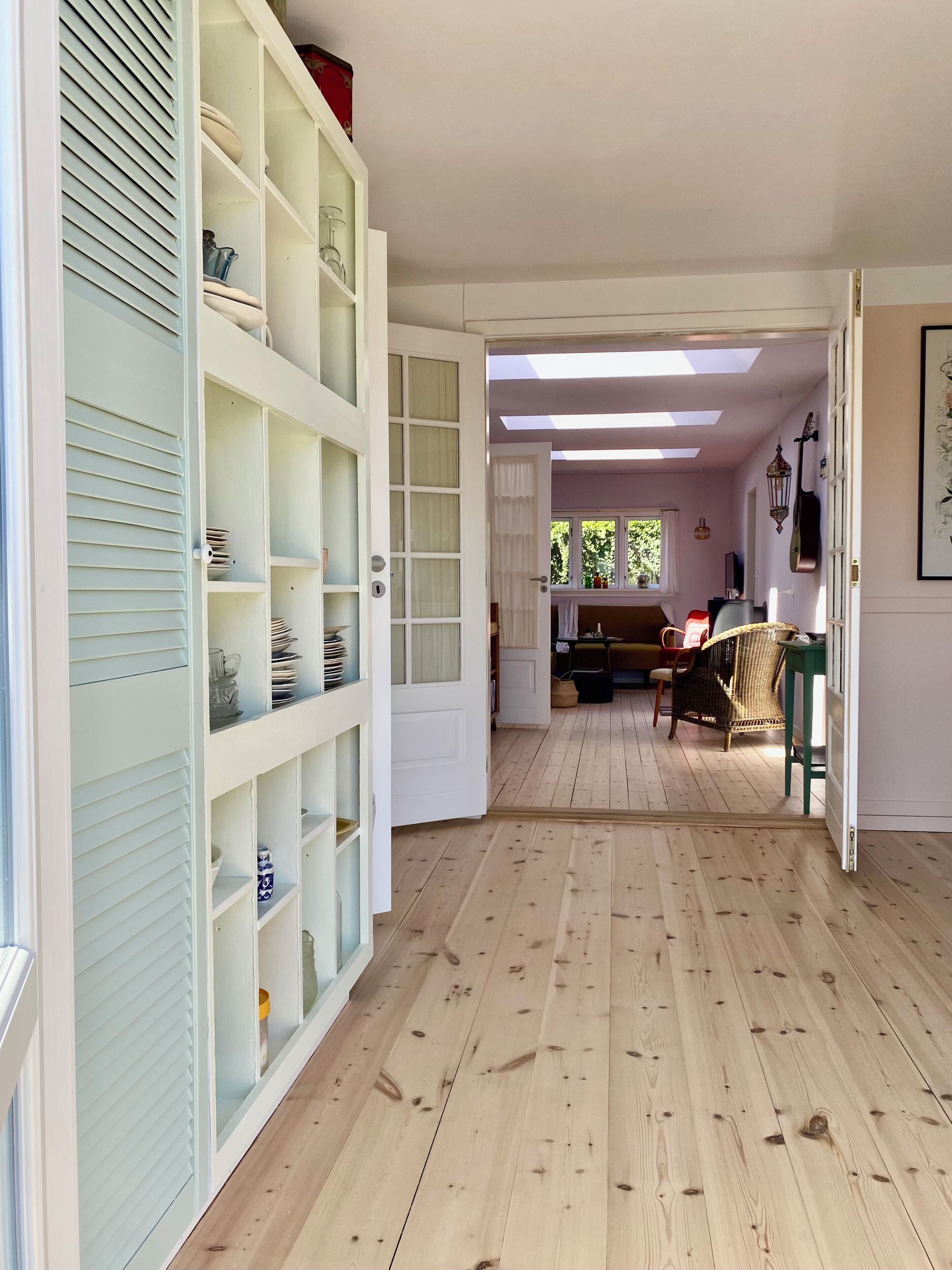 The house is one of the original houses in Sømarken, built in 1968, but later renovated and modernised, so it now appears in a relatively modern state. It features a nice open living room from which you can enjoy the view to the garden and the green areas. The kitchen is kept in old-fashioned style, while bathing facilities are more modern.