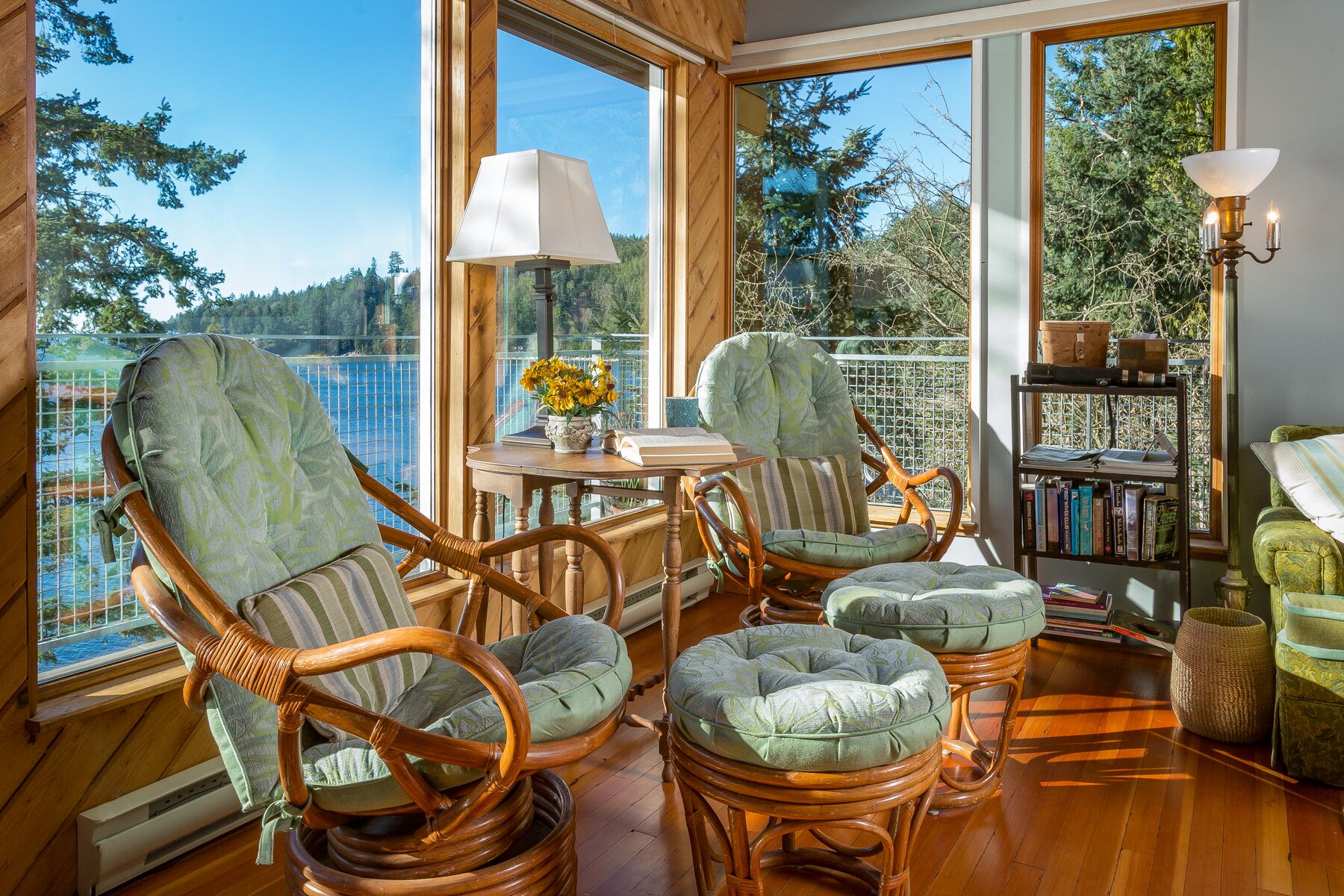The Large living room, 27’x 27’, has 3 separate sitting areas: Watch the High Definition 55” Smart TV with Cable connection, Relax and Read in one of our Comfort Zones, or Gaze out the Expansive Windows to view Eagles or Ferries going by.