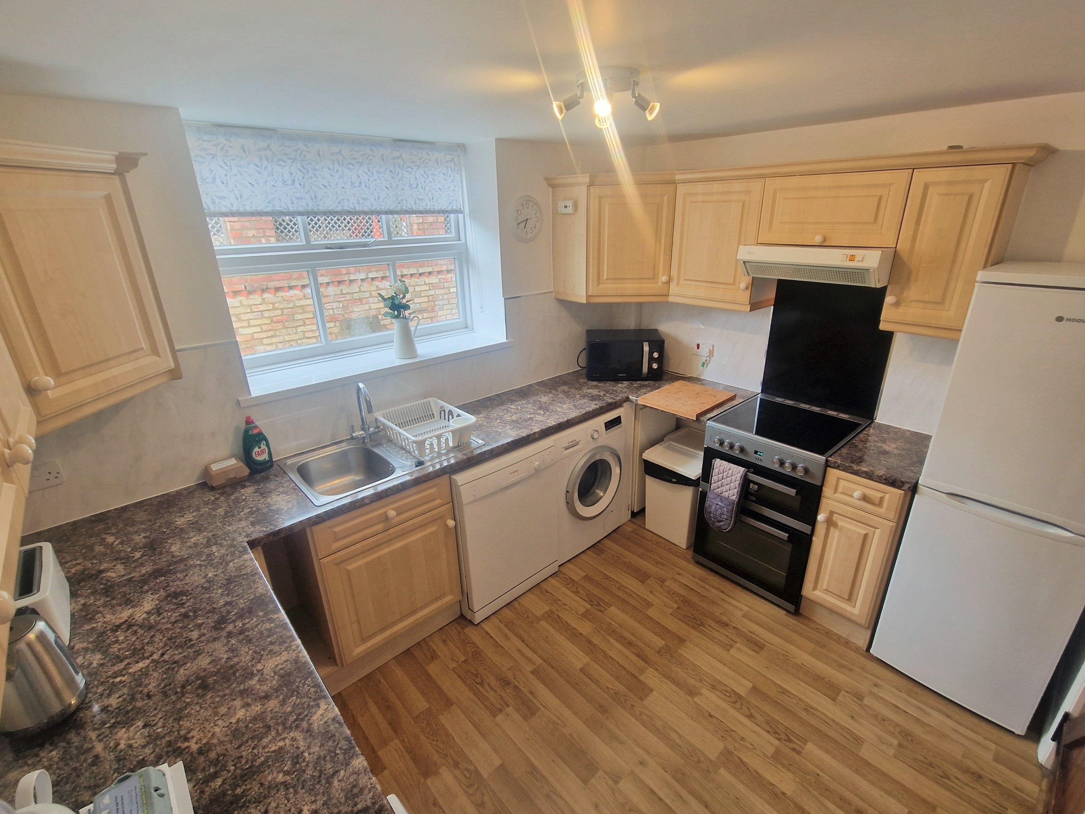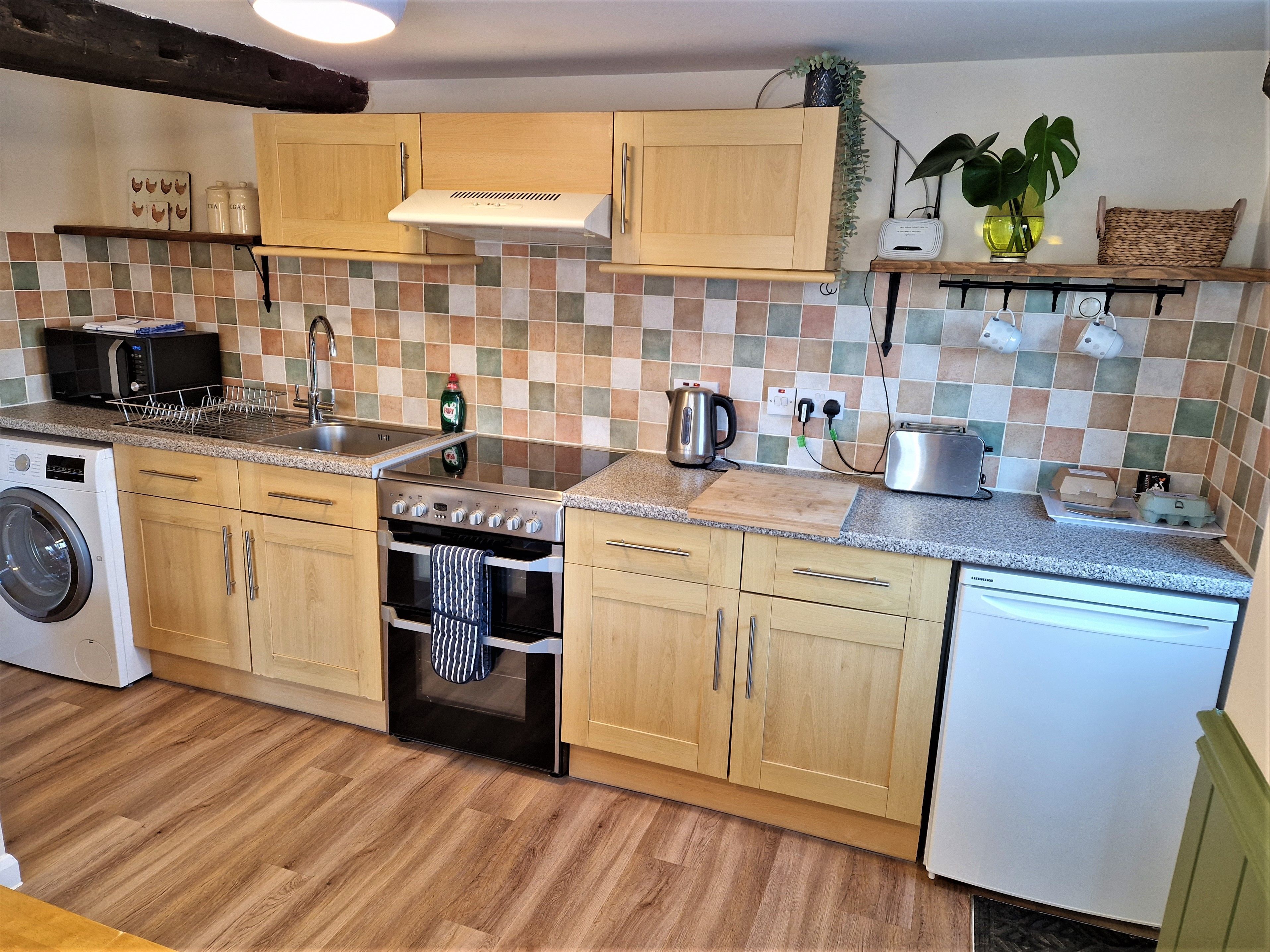- full size hob, oven, microwave, fridge freezer and abundance of crockery and pans