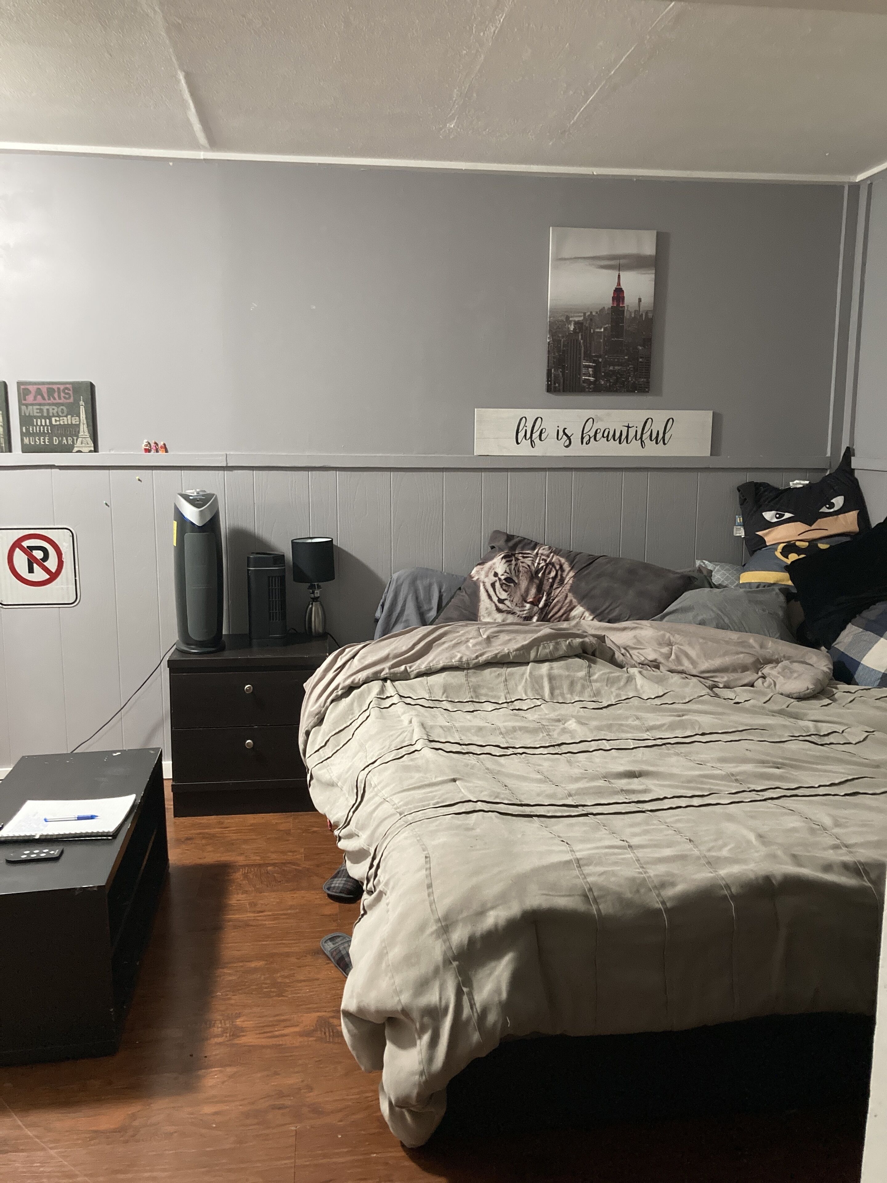 One bedroom quiet basement with shared bathroom, kitchen, dining room, living room and dedicated office space.