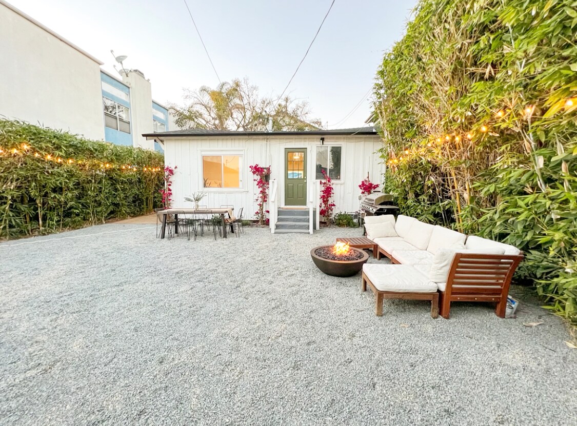 The Flower Cottage is a beautifully restored California Craftsman that sits in a private space in the very back of our property. Your dreamy backyard is complete with a BBQ, fire pit, lounge furniture, fresh passionfruit, fragrant lavender, and more. You also have an electric gate to park a large car in for safe keeping (+ access to a 110v if you have an EV!) Additionally, we have a newly installed swedish dry sauna that is shared with the main house... use as much as you may like! We hope you'll have special evenings using the grill, unwinding by the fire pit, and enjoying the twinkle lights. If you have dogs, this yard is a dog paradise. We welcome all fury friends!