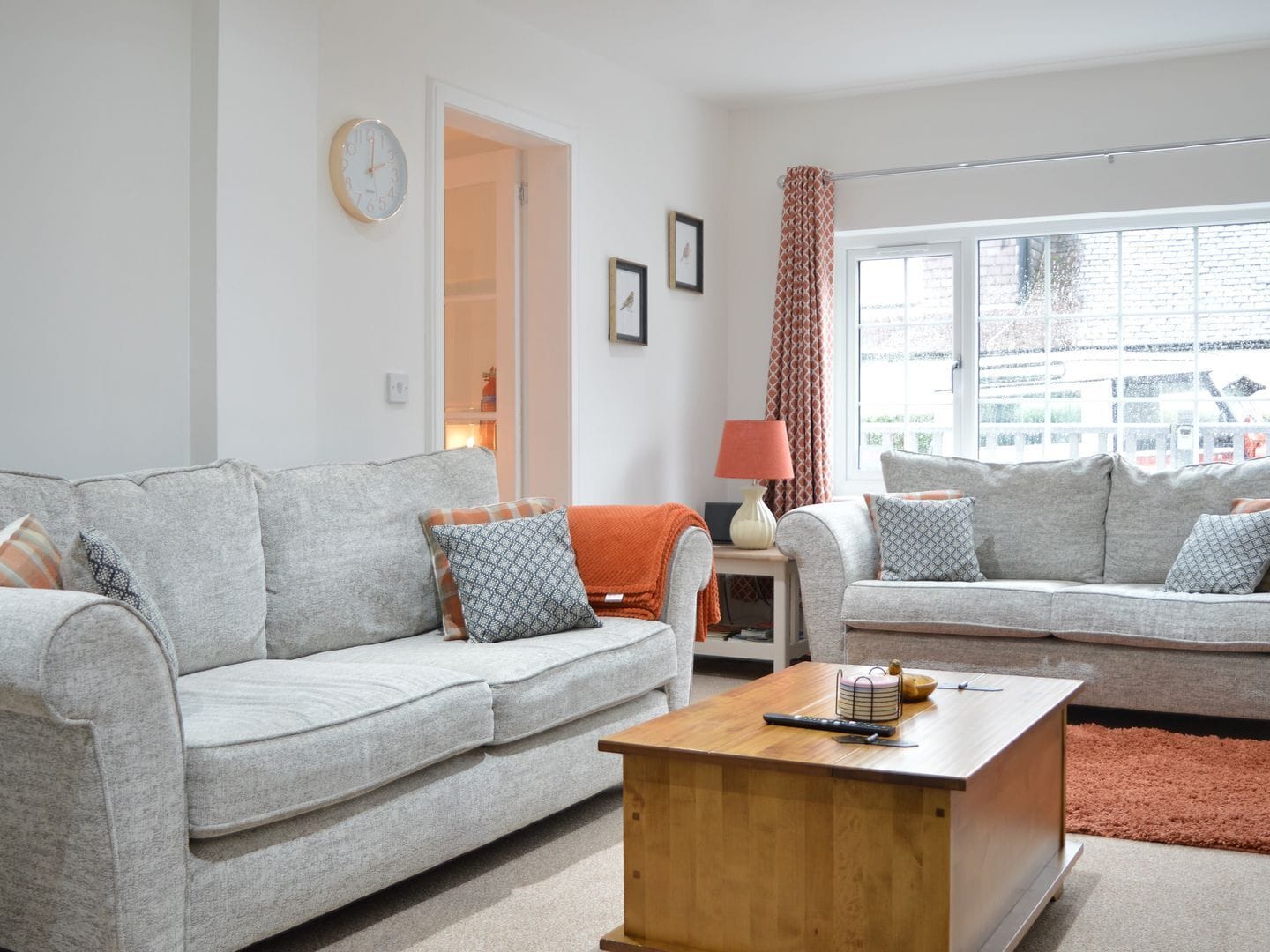 Minimalist and elegant, this stylish home makes the most of its incredible surroundings with large windows and patio doors allowing magnificent views from the sofa. Cream walls are punctuated with feature walls in muted greens and greys, while warm wooden touches complement colourful soft furnishings creating a contemporary yet cosy home from home.