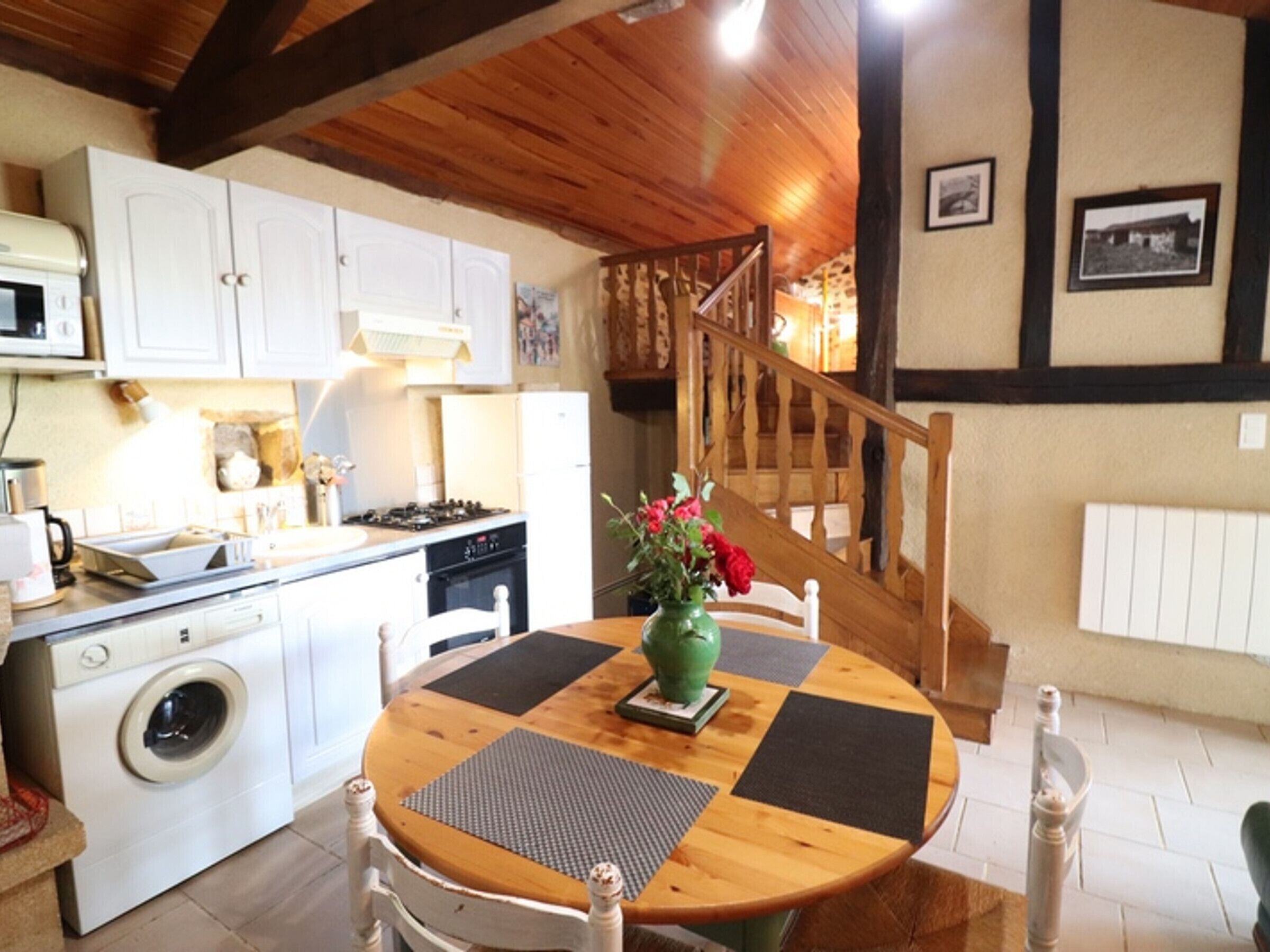 The cottage is furnished with a large living room, inglenook fireplace and wood stove, open kitchen fully equipped, bathroom (shower, sink and toilet), laundry with washing machine. On the floor three rooms (3 beds in 140 cm and a convertible BZ, possibility reads baby) and a room of bath with TOILET.