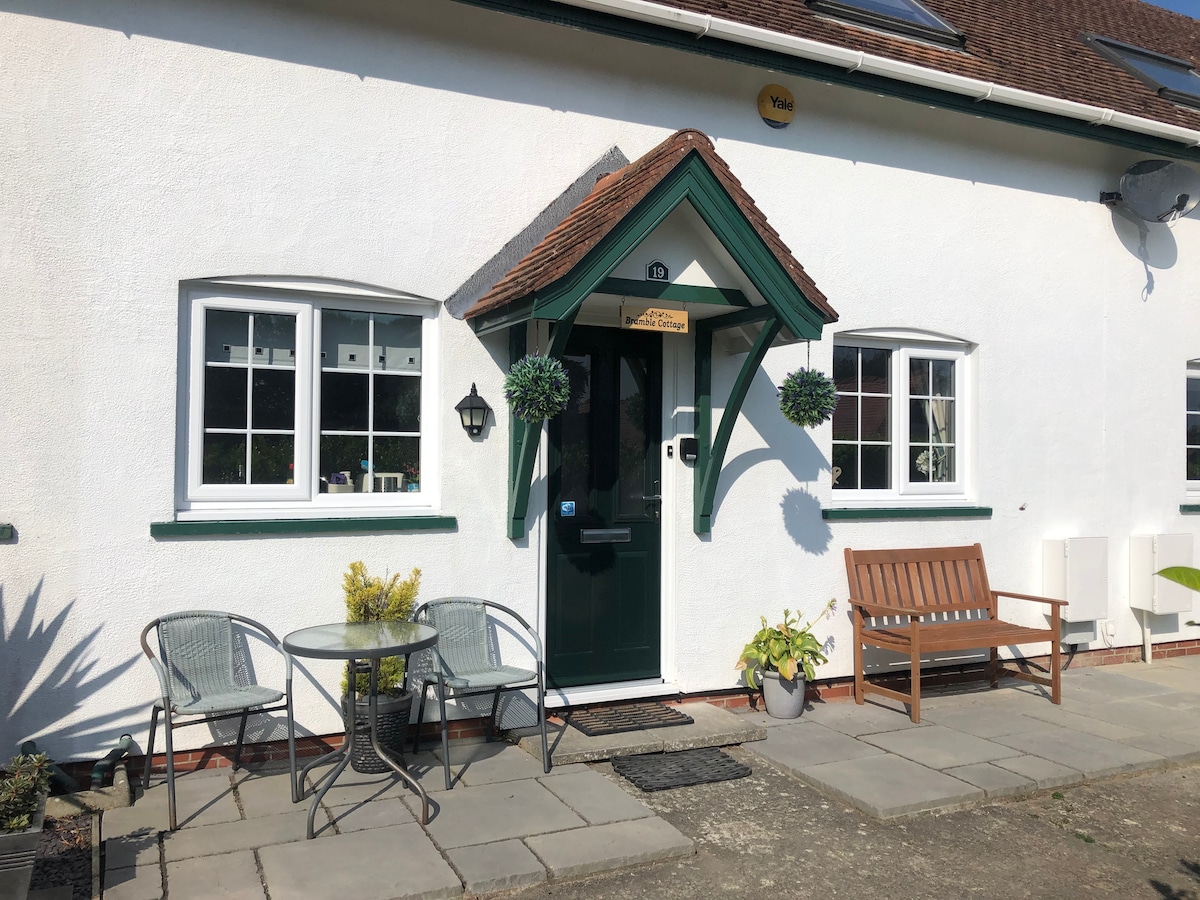 There are 3 steps on to the cottage path which leads through an enclosed front patio garden.
