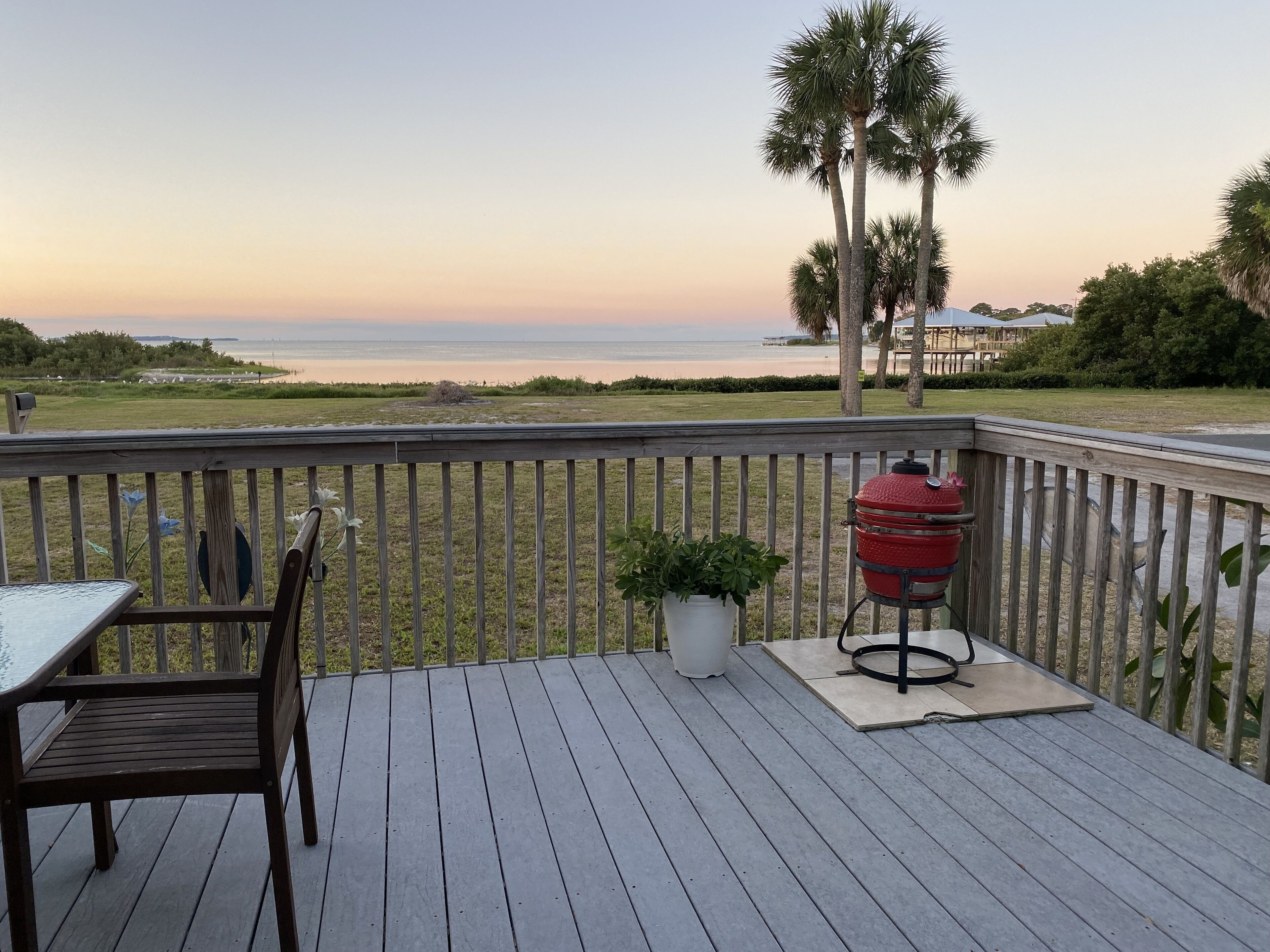 You won’t want to miss watching our spectacular sunrises from the screened porch of this Cottage. Please note that the dock behind the screened porch is for all of our guests to share. NOTE: Unfortunately, our common dock was swept away during Hurricane Helene and will be re-built in the near future.