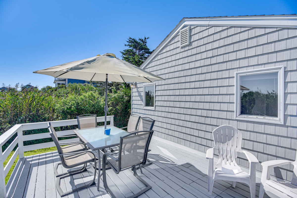 Step back in time to a quiet, relaxed beach community. Charming two-bedroom beach cottage with fully equipped kitchen, comfortable living room, and wrap-around deck including screened-in porch. Located in a quiet neighborhood, the Cottage is across the street from a saltwater pond for kayaking and canoeing; down the street from a boat launch and “kiddies” beach. Walk, bike, or drive less than one mile to miles of ocean beach. The Cottage comes with a parking pass for the local beach lot.