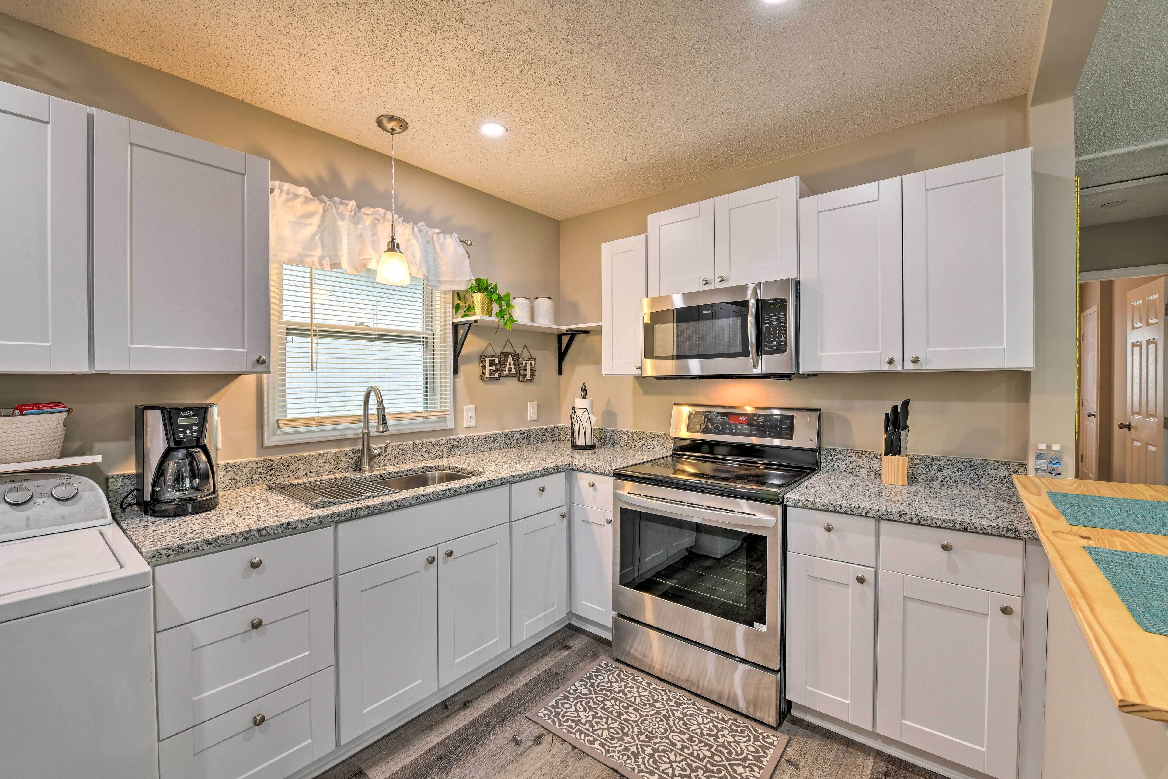 The kitchen is fully equipped with new upgrades to accommodate your needs.