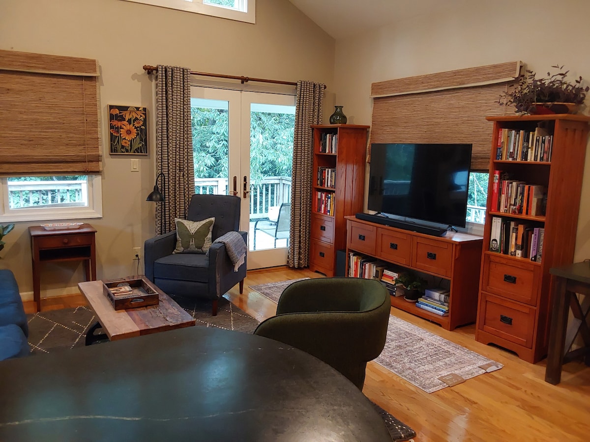 Perfect for a couple or two people who want separate rooms…or people with children .Maybe NOT great for toddlers and anyone who can’t do steep steps .Dogs love this place and the freedom it allows them.Would be a great place for a graduation or bridal party.Two couches and extra bedding available.