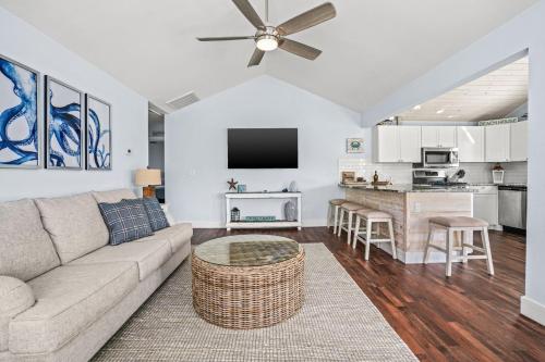 The wide and inviting front porch is the first thing you will notice as we welcome you to our island haven. Beyond the front door, you will find an open living room and kitchen designed for easy entertaining with plenty of seating and views through to the spacious screened porch. Eat in the kitchen or gather around the dining area on the screened porch.
