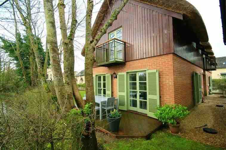Bedroom: Kingsize (5ft) Bed, Smart TV Ensuite: Cubicle Shower, Toilet. Gas central heating (underfloor on ground floor), electricity, bed linen, towels and Wi-Fi included. Initial fuel for wood burner included. Gravelled courtyard with decked area and garden furniture. Bike store. Private parking for 1 car. No smoking. Please note: Sorry, no children or babies. The garden is accessed via a wooden bridge over an unfenced river.. Stratton Mill dates from the late 18th century, though there has been a mill on site since 1086. The River Churn flows to one side of this holiday property, attached to the old mill itself and with its own riverside courtyard garden. With a separate and well-equipped galley-style kitchen, the beamed living room is stylish and contemporary, with large glass doors overlooking the garden and with an attractive bedroom and en-suite bathroom on the first floor. Surrounded by water meadow, the area is quiet and peaceful and perfect for a romantic getaway. Shop 300 yards, pub 600 yards.