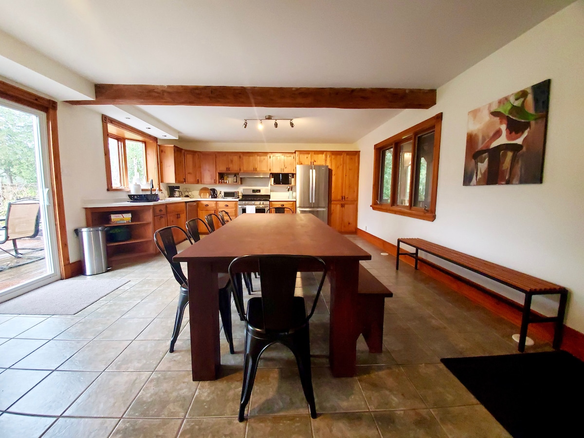 Après-skiing, relax by the fireplace with your favorite wine or enjoy an evening by the bonfire. In warmer weather, play outside on the enormous waterfront property or kayak and swim in the Bay. Cook your favorite meals in the fully equipped kitchen or BBQ by lake or, if you'd rather eat out, take advantage of the great selection of restaurants nearby.