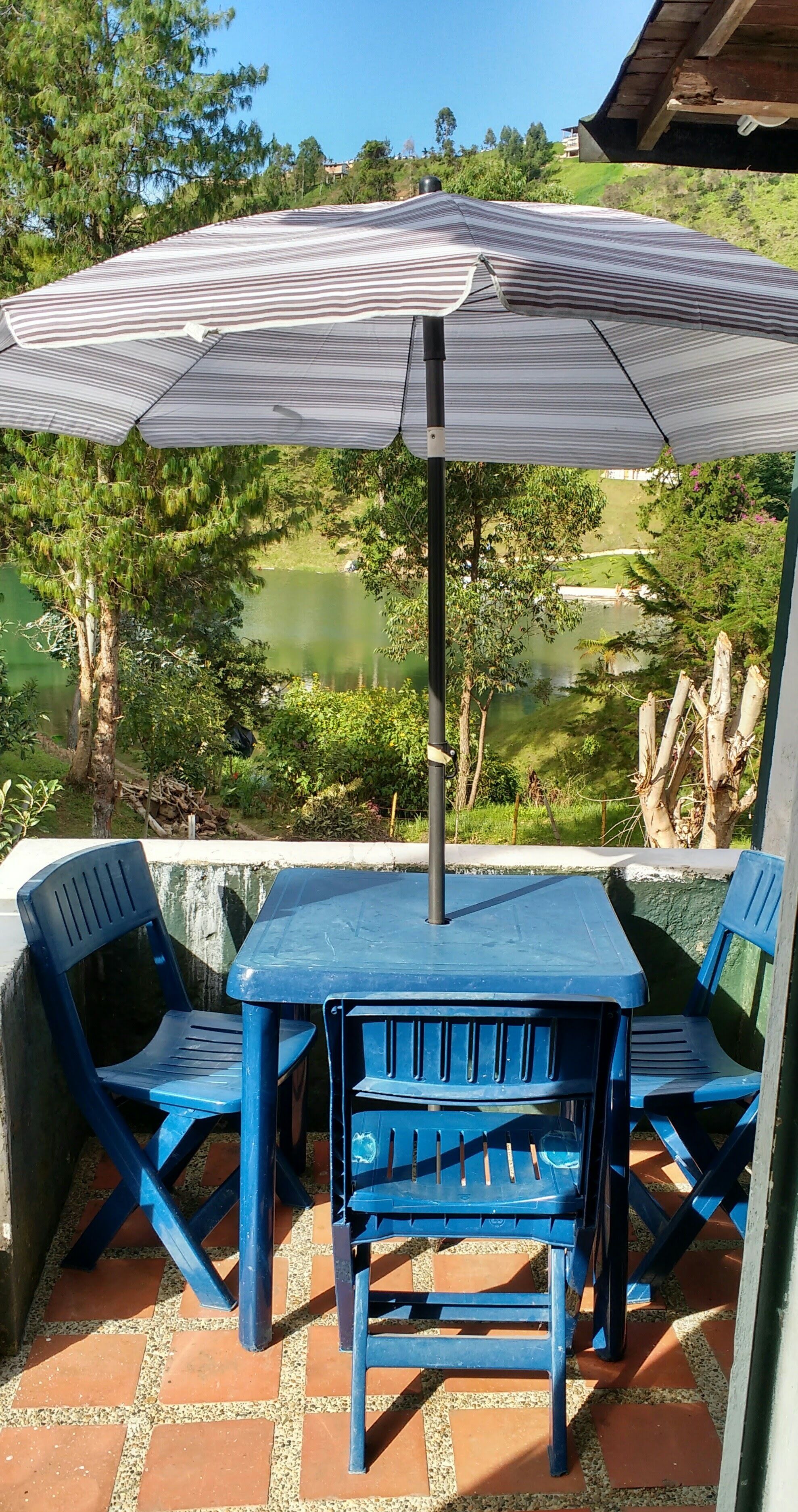 It is a country house with 3 bedrooms, a living room, a kitchen, a tree house for kids, a patio with a chimney and BBQ included and a steam room available. It has beautiful gardens and green areas, a fantastic view of the Piedra del Peñol as well as the Guatapé dam. It is only a five minute walk from the village of Guatapé.