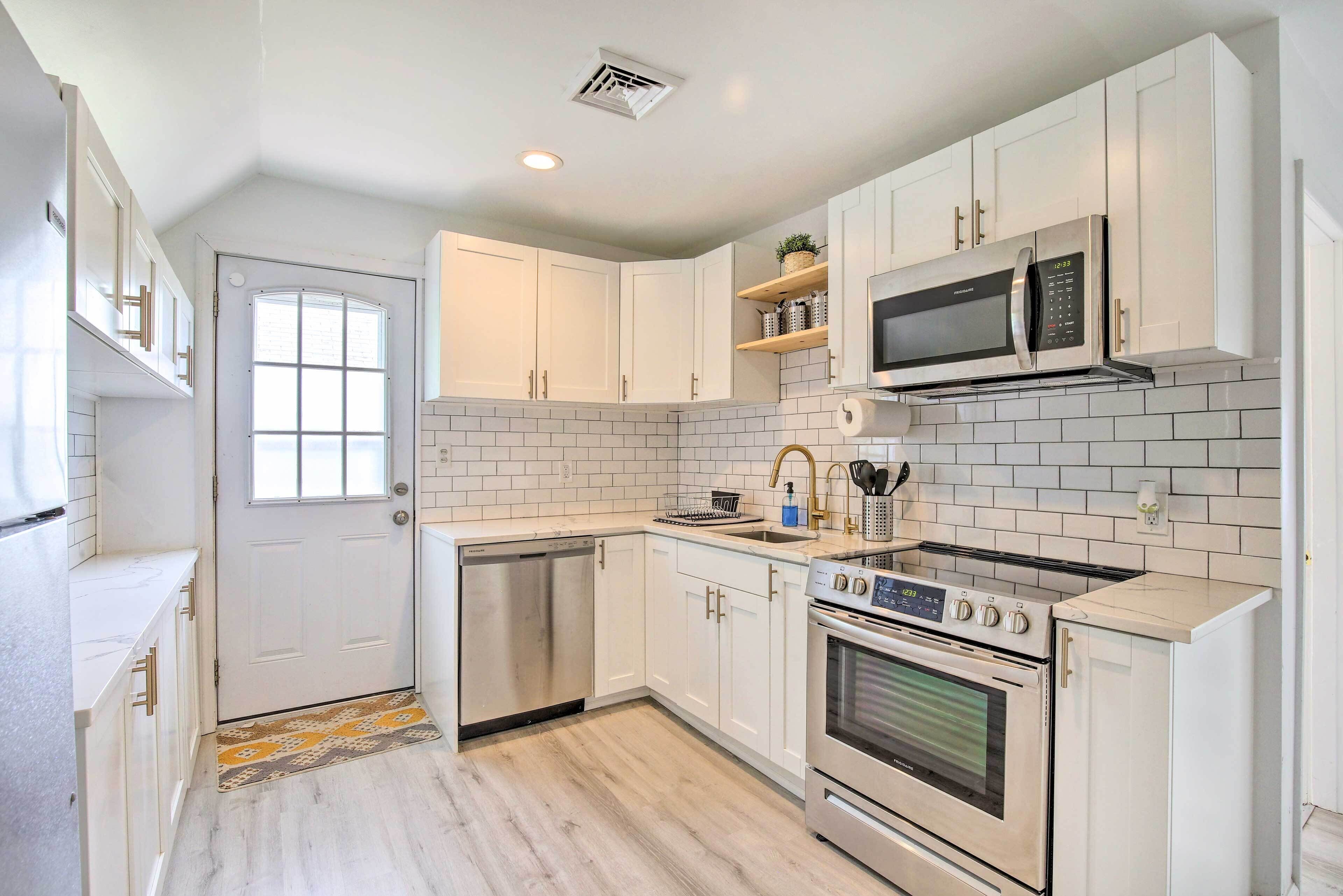As you settle into this 1-bedroom, 1-bathroom rental, you'll find a living room, air conditioning, a ceiling fan, and a desk. The kitchen is equipped with an oven, a stovetop, and a dishwasher, as well as cookware, a blender, and a coffee grinder. And because there's a washing machine, you can go a bit lighter on your packing.