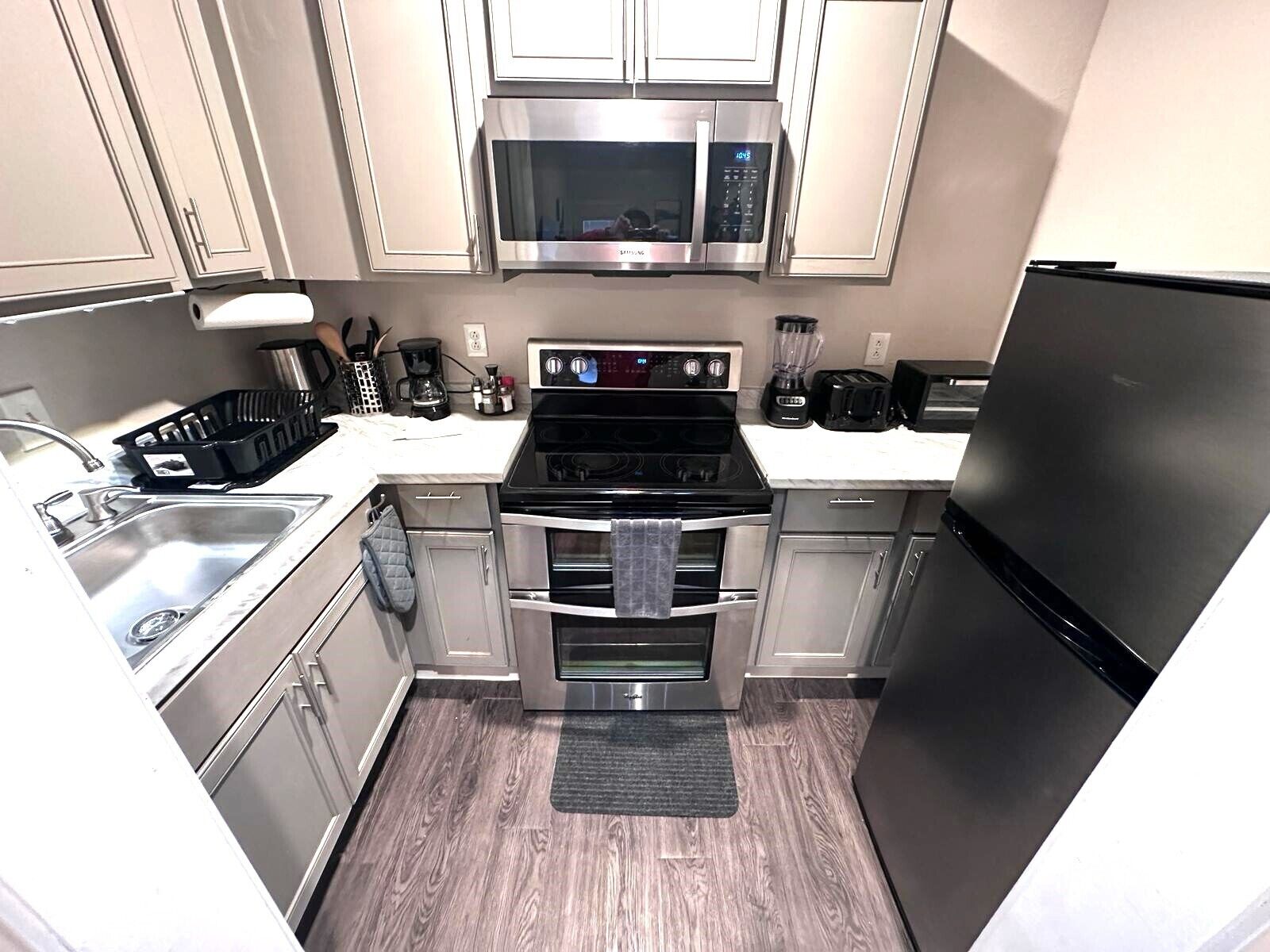 • Full Kitchen: Microwave, Dishwasher, Gas Range, Oven, Toaster & Refrigerator