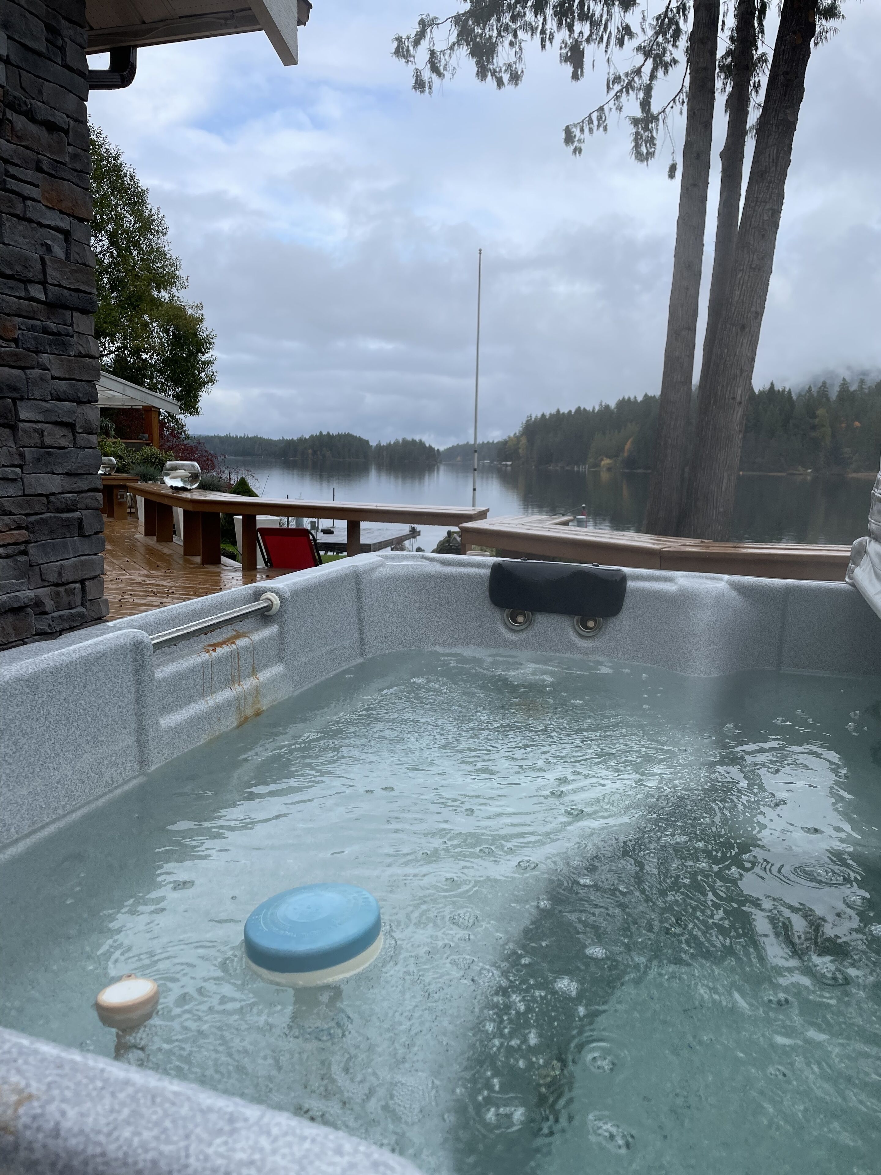 Right over the water with stunning uninterrupted views of Maple Bay, Saltspring Island, and Birds Eye Cove Marina. Enjoy a glass of wine on the deck, watch the moon rise over Saltspring Island, or bundle up for storm watching and then a steam shower. Bring your boat! Dock space is available.